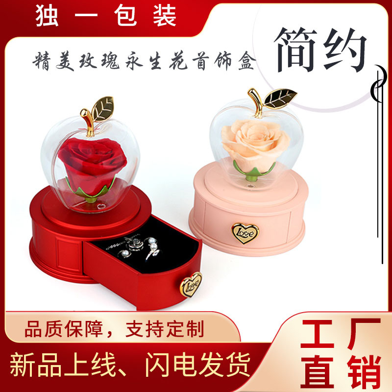 跨境苹果抽屉盒玫瑰永生花圣诞礼盒情人节平安夜亚克力项链戒指盒