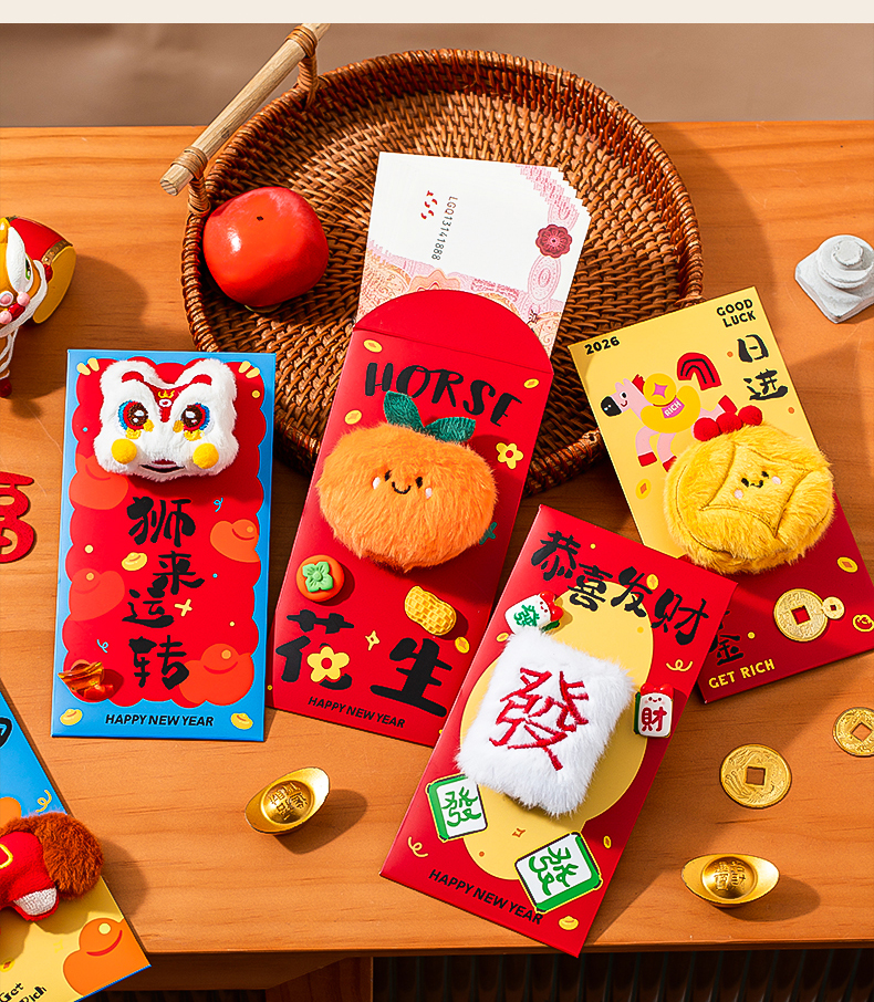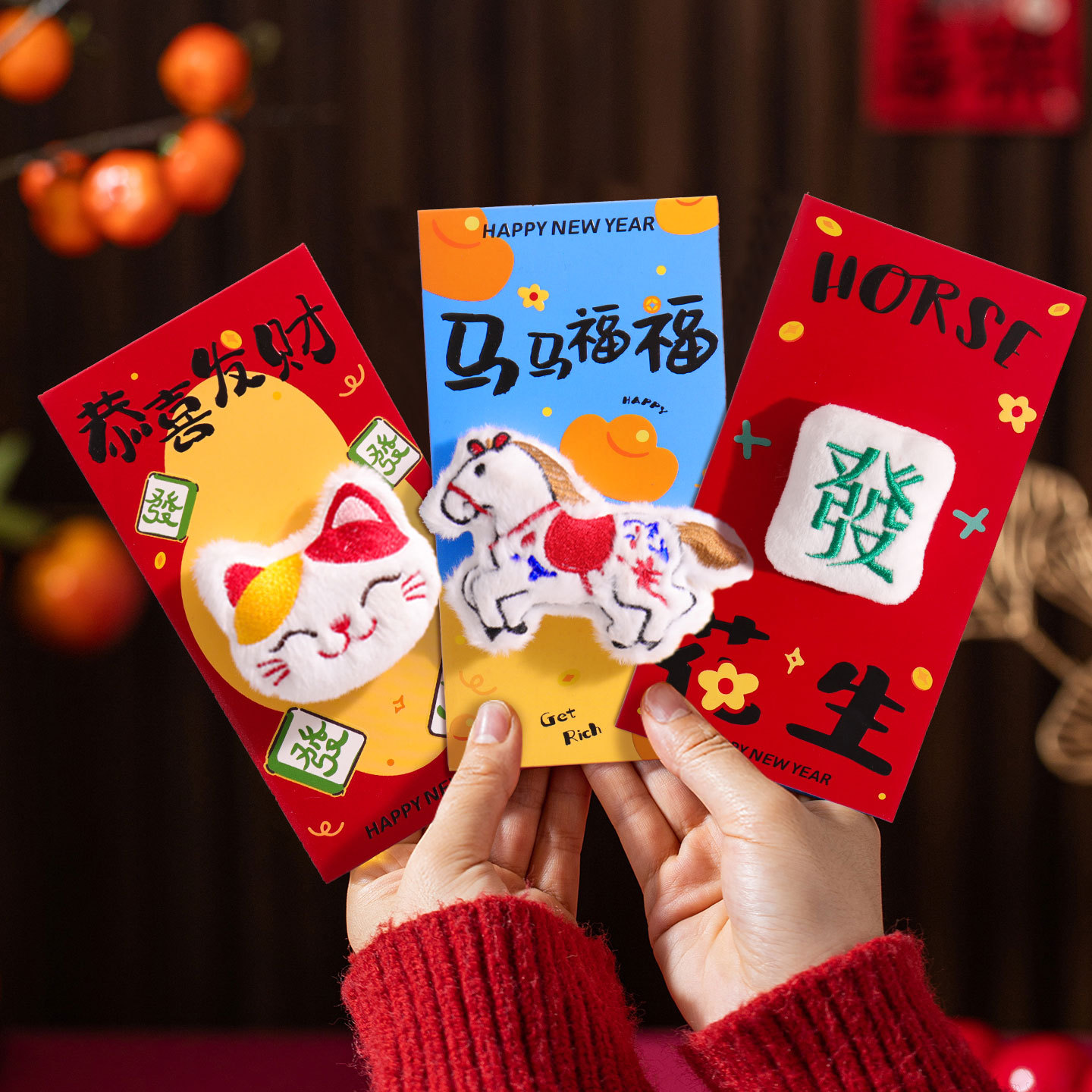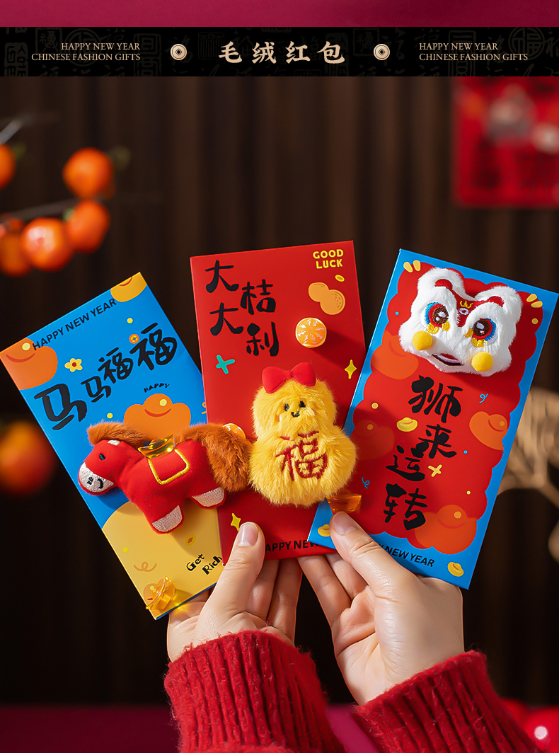 2026新款马年可爱卡通毛绒红包春节生日新年通用过年利是封压岁