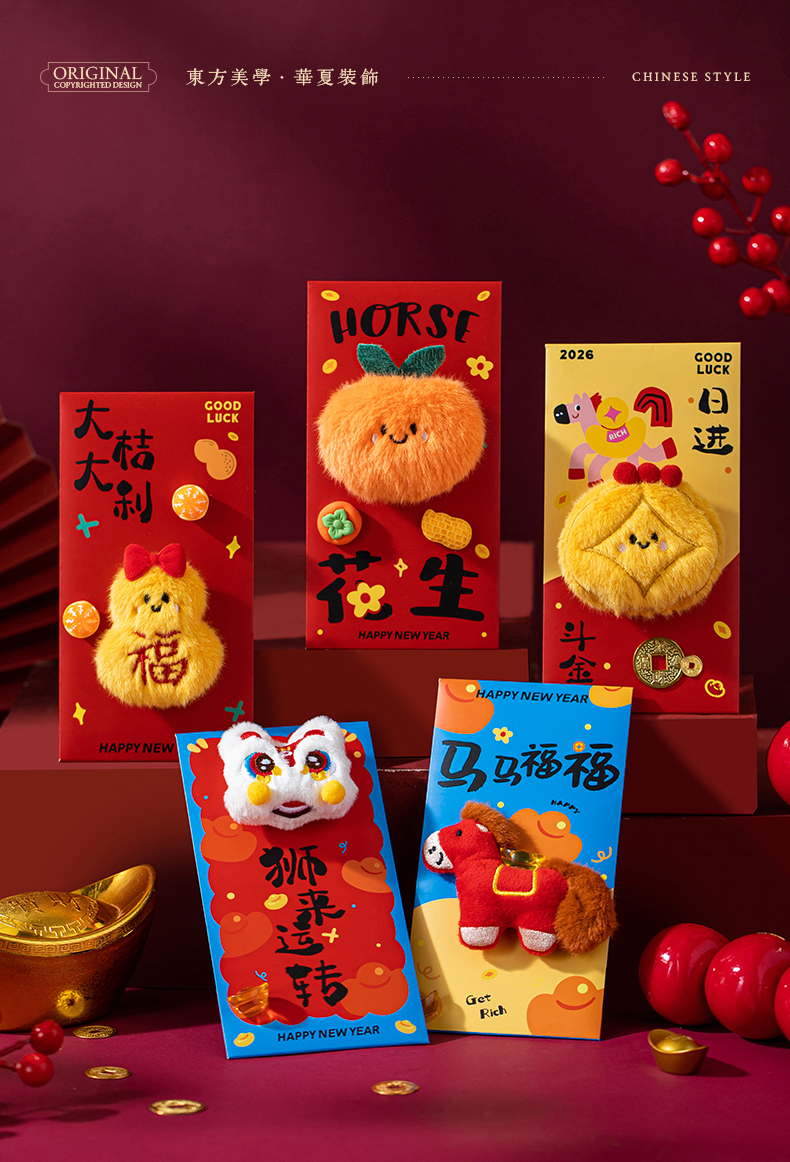 2026年馬年ぬいぐるみ風紅包 中国風紅包袋 新年春節福袋 千元国潮お年玉袋