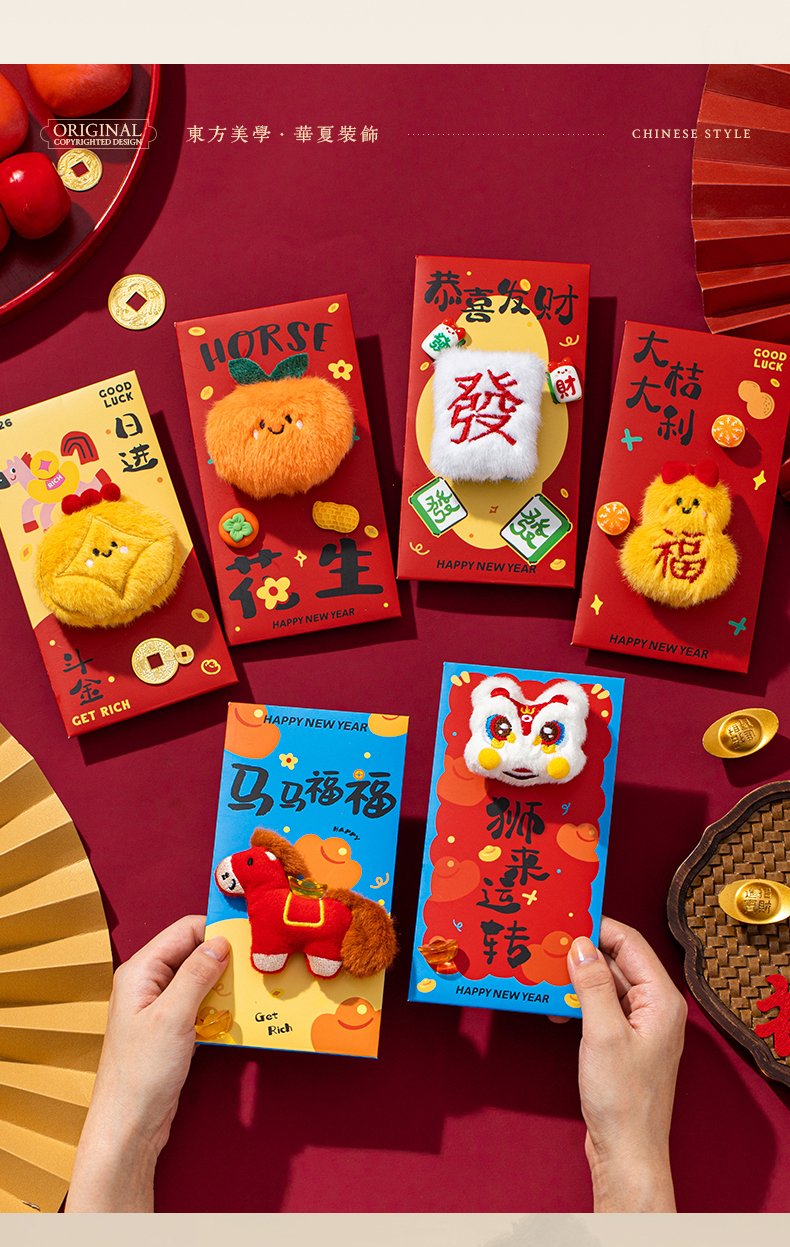 2026马年春节新款新年红包封毛绒卡通个性创意利是封袋过年压岁包