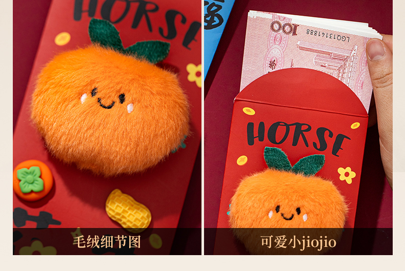 马年立体刺绣毛绒红包生日新年惊喜红包喜庆马年新年春节卡通红包