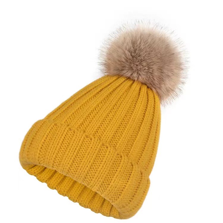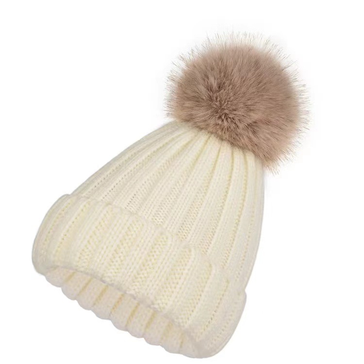 日本デザイン親子m標冬保温ニット帽女性秋冬百合狐毛玉かわいい毛糸帽子