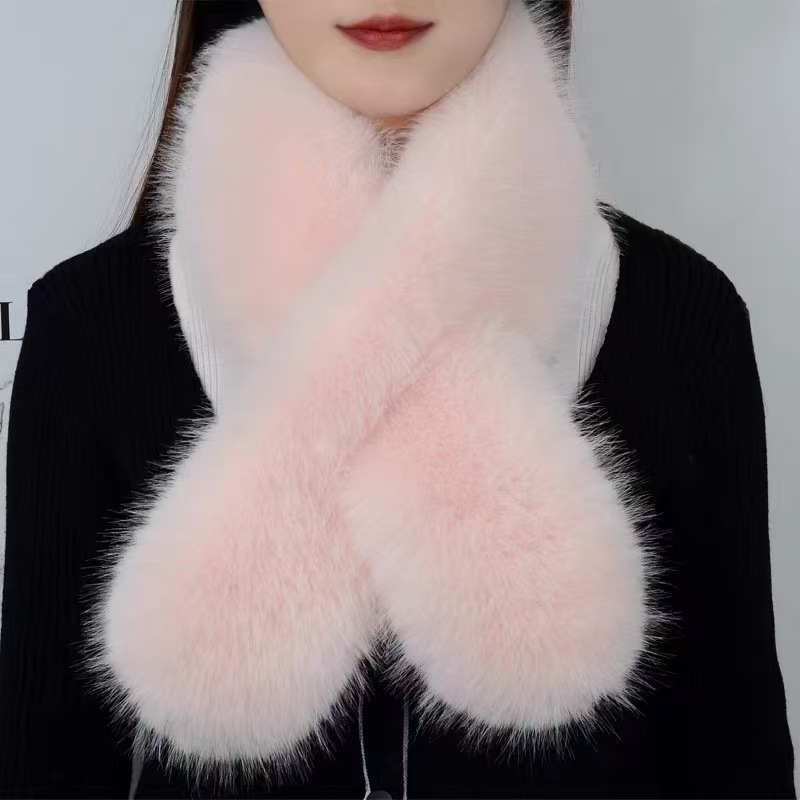 围巾女冬款加厚保暖獭兔毛圆领围脖百搭护颈毛绒交叉男女士通用