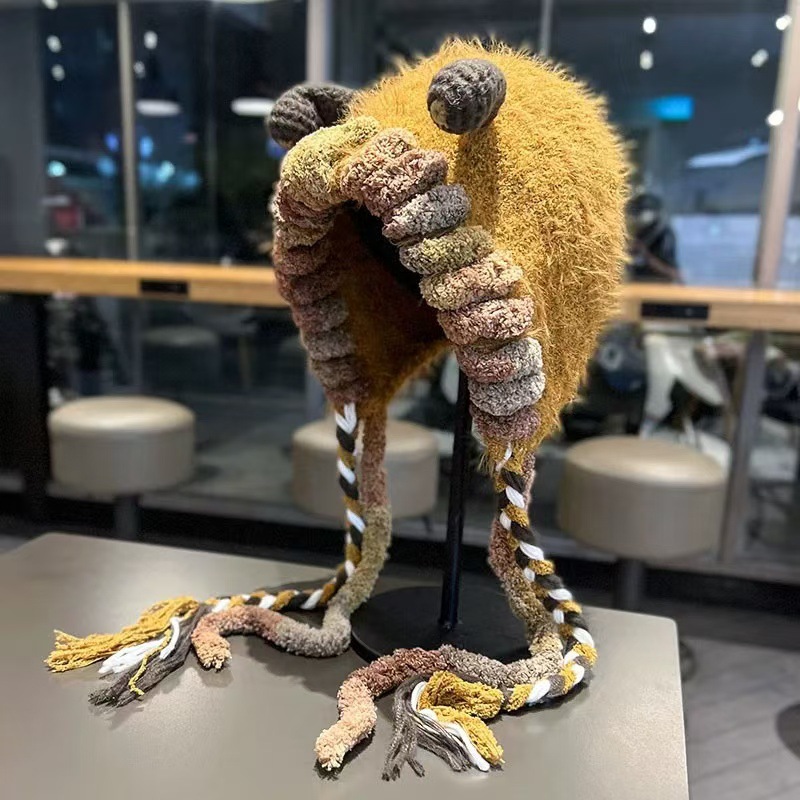 帽子の女性の秋冬の新型のアニメの小さい怪獣の毛の帽子の保温の耳の手作業のかぎ針は包頭を編んで雷鋒の帽子を編みます。
