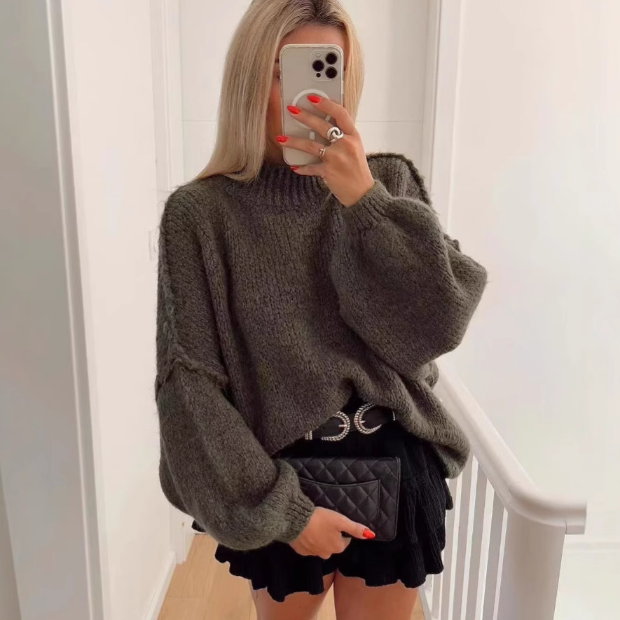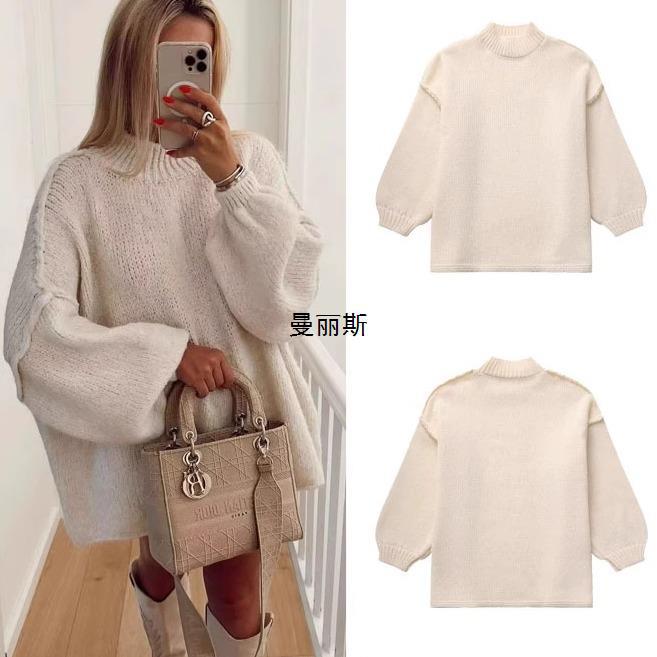 国境を越えた欧米の女装速売通INSが起爆した丸首トランペット袖ニットのゆるいセーター