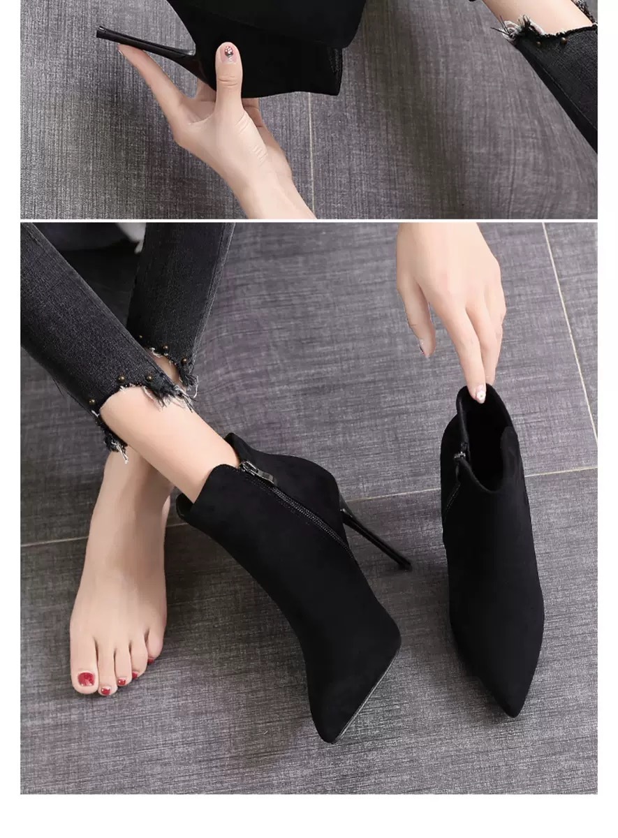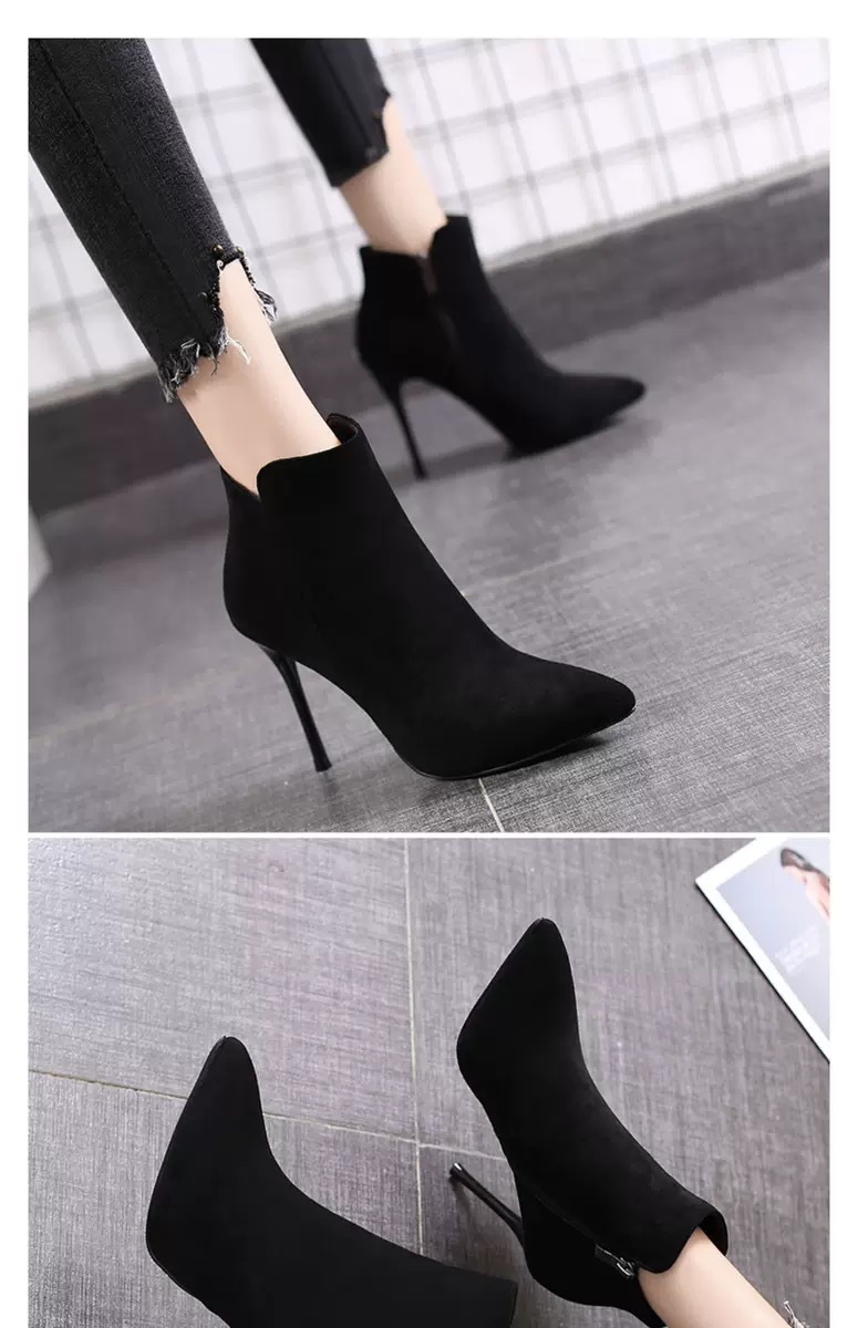 Z尖頭ショートブーツ レディース 細ヒール 2024冬 裏起毛 スリムブーツ ミドルヒール スエード ネイキッドブーツ ハイヒール マーティンブーツ