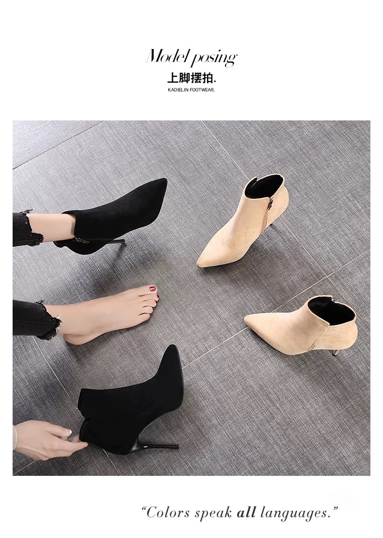 Zショートブーツ レディース 春秋 シングルブーツ 2024年新作 セクシー スティレットヒール ポインテッドトゥ スリムブーツ ヌードブーツ ショートブーツ ハイヒール 秋