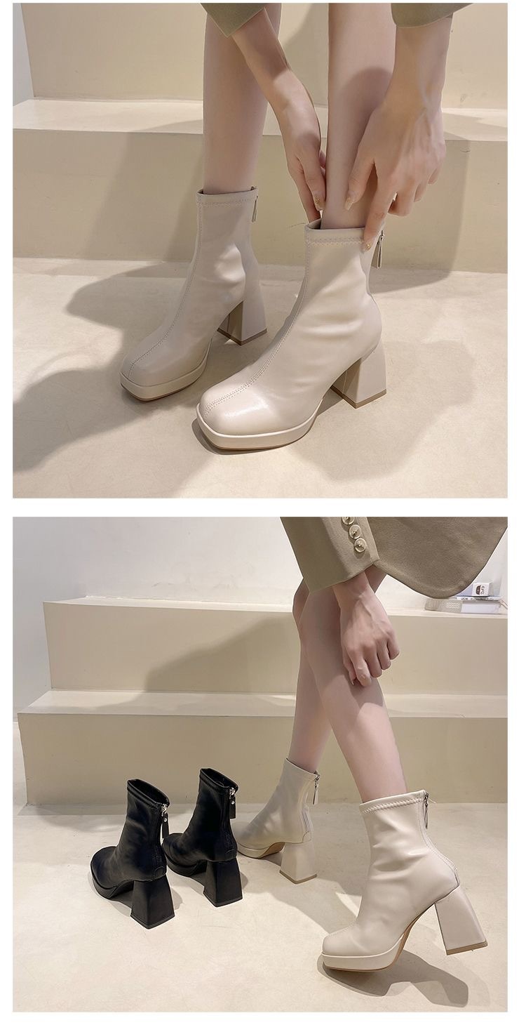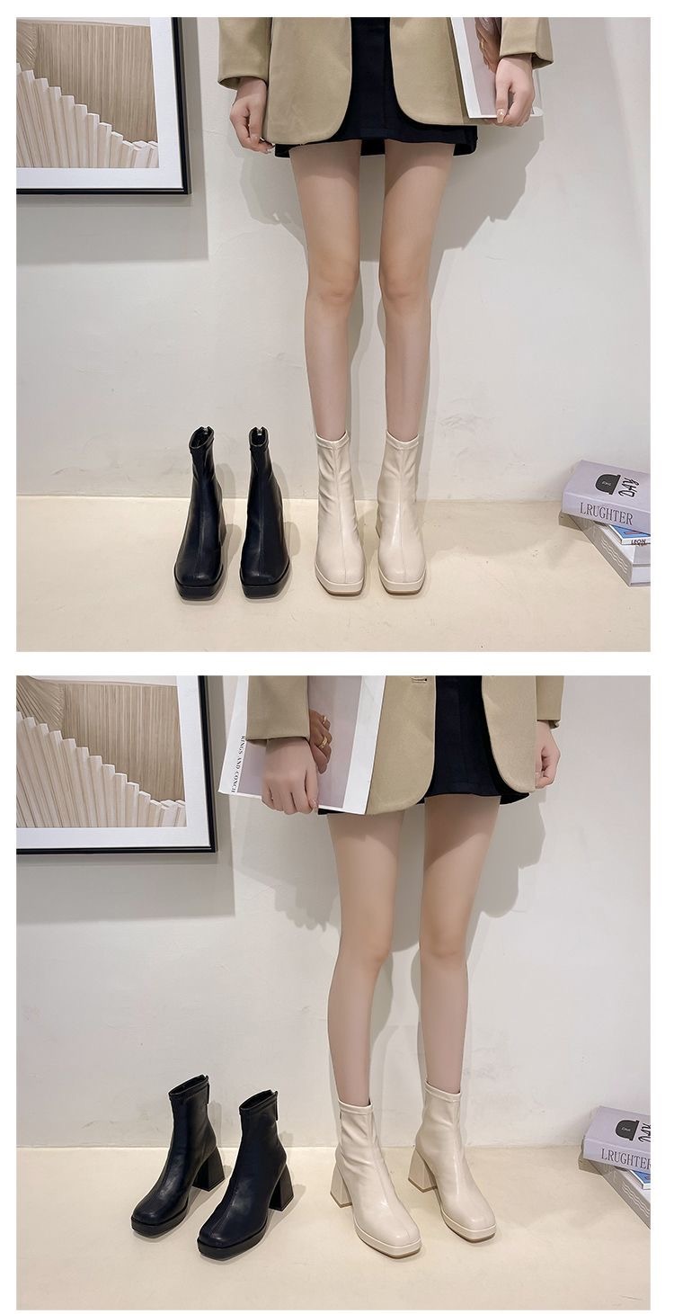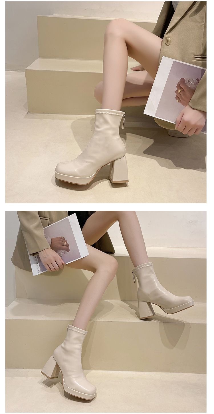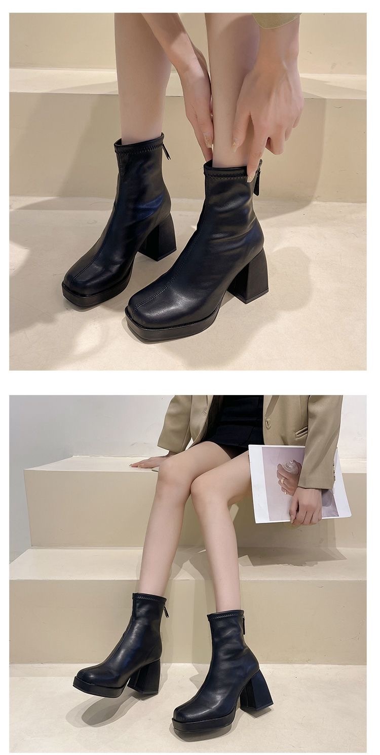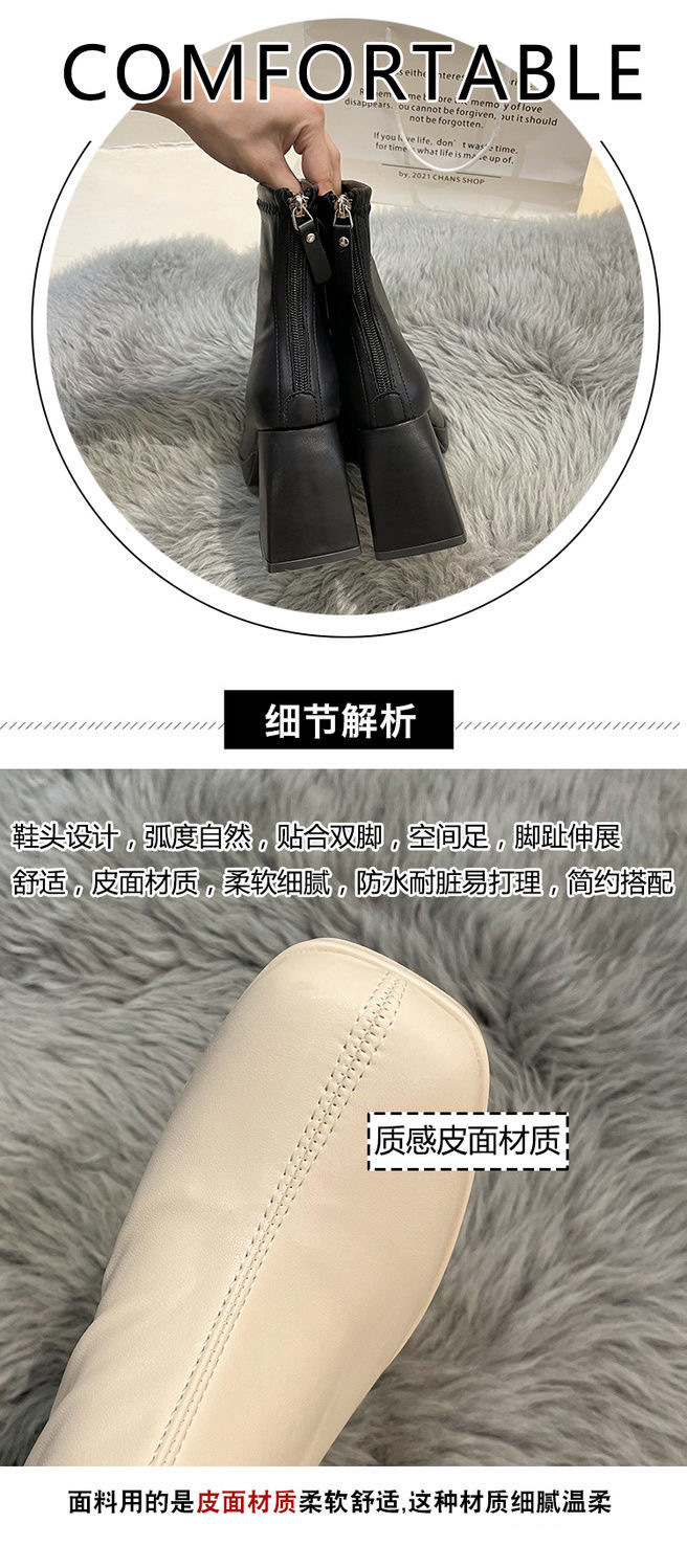 Zマーティンブーツ レディース 2024新作 万能ジッパー スリム ハイヒール ショートブーツ スクエアトゥ 太ヒール スリムブーツ ヌードブーツ