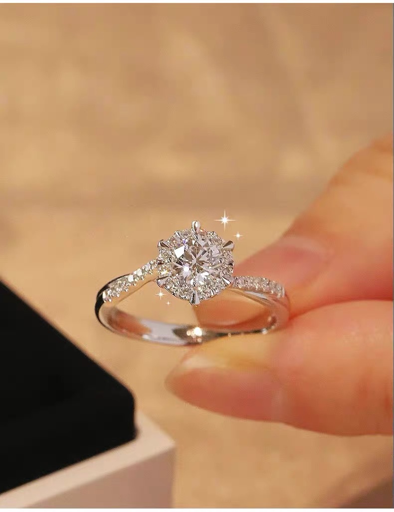 星織指輪女ins小衆設計ドリルリング一カラット活口ねじり腕軽豪華高級指輪メーカー直販