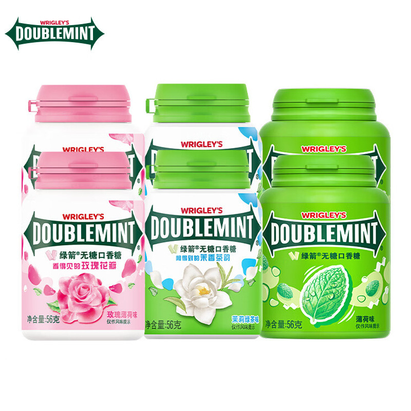 绿箭无糖口香糖约40粒56g瓶装 玫瑰茉莉薄荷木糖醇口香糖清新口气