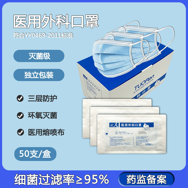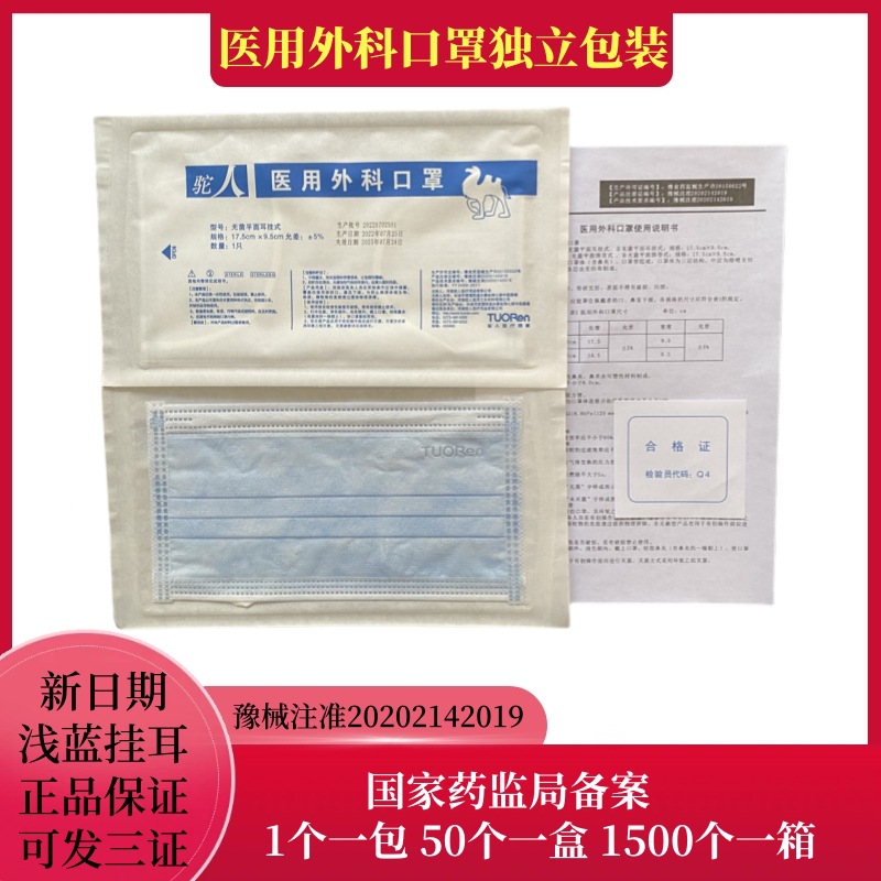 河南驼人医疗 驼人医用外科口罩独立包装50支/盒成人男女通用无菌