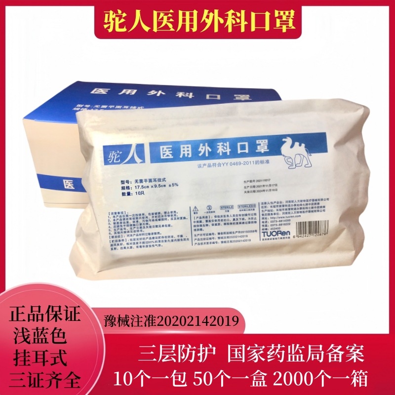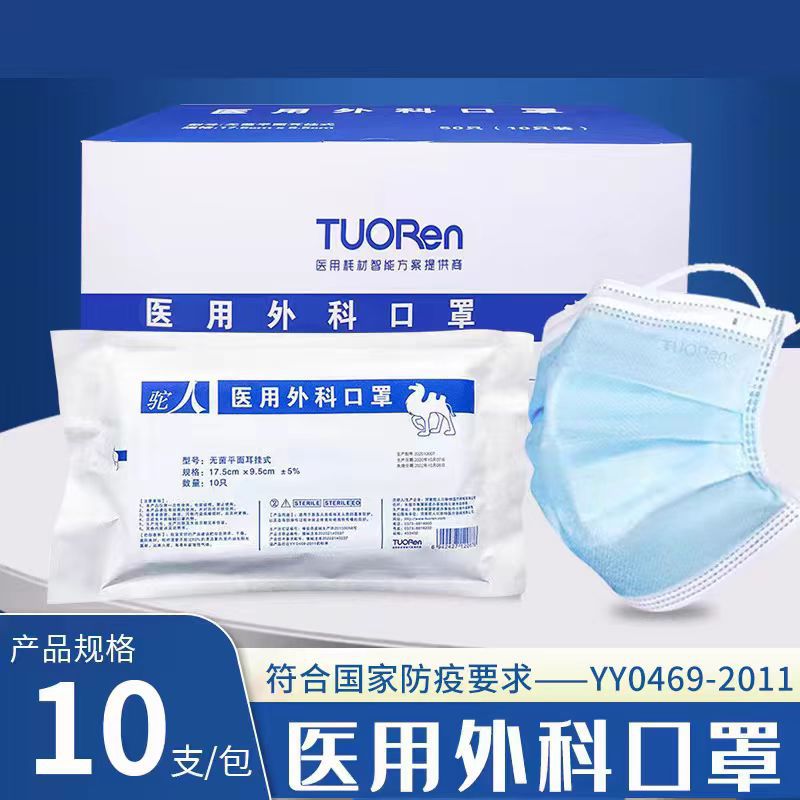 河南驼人医疗 驼人医用外科口罩成人款男女通用10只装非独立无菌