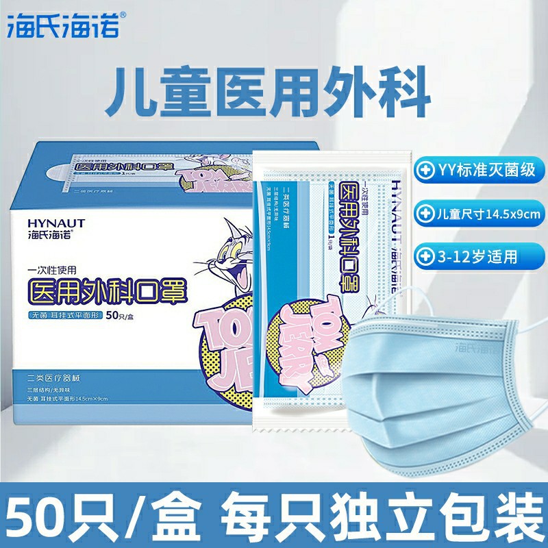 海氏海諾子供マスク医療用外科用独立包装マスク使い捨て無菌マスク50個