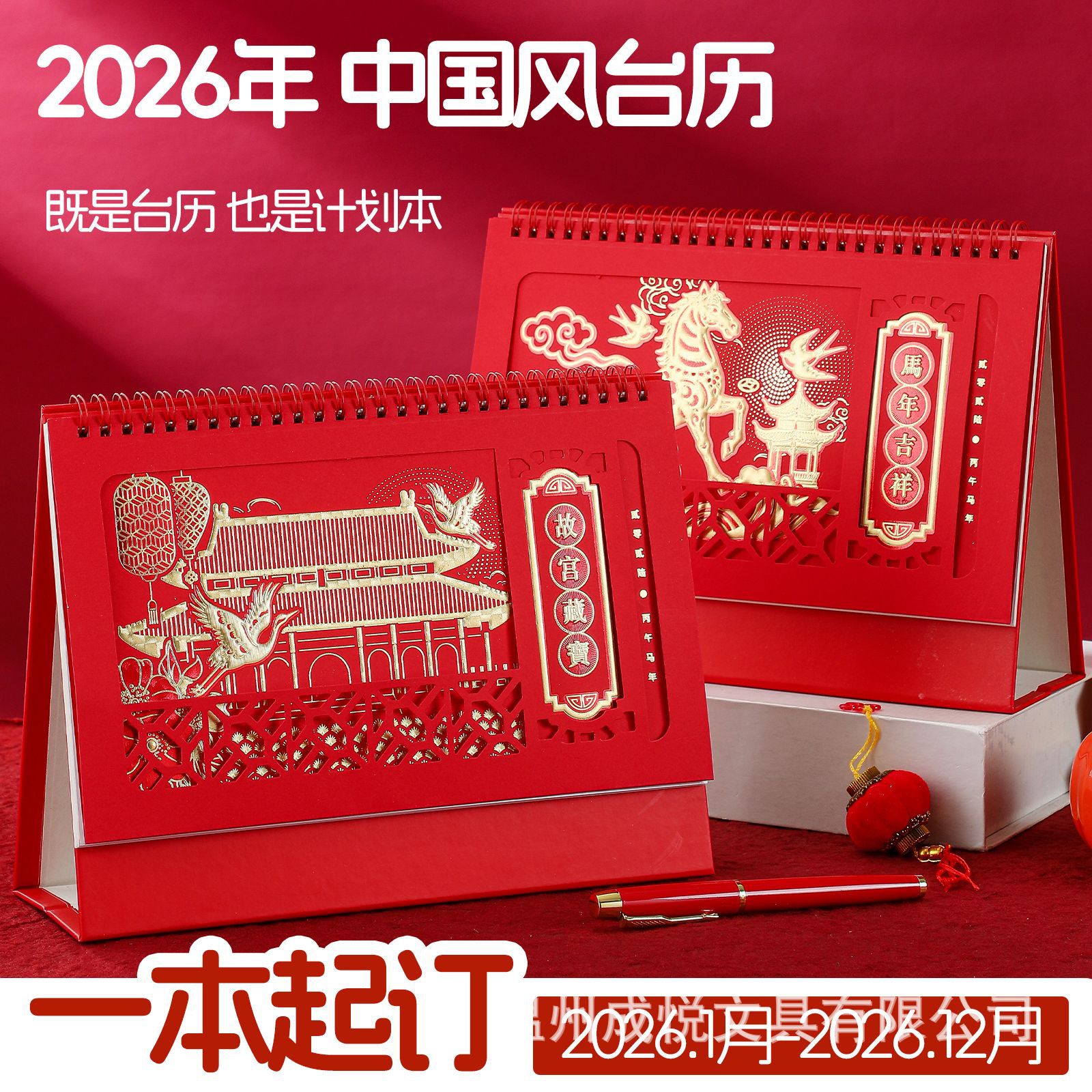 2026年新作 国潮風 祝福の透かし彫り卓上カレンダー カスタム企業広告月間カレンダー オフィスデスク飾りカレンダー