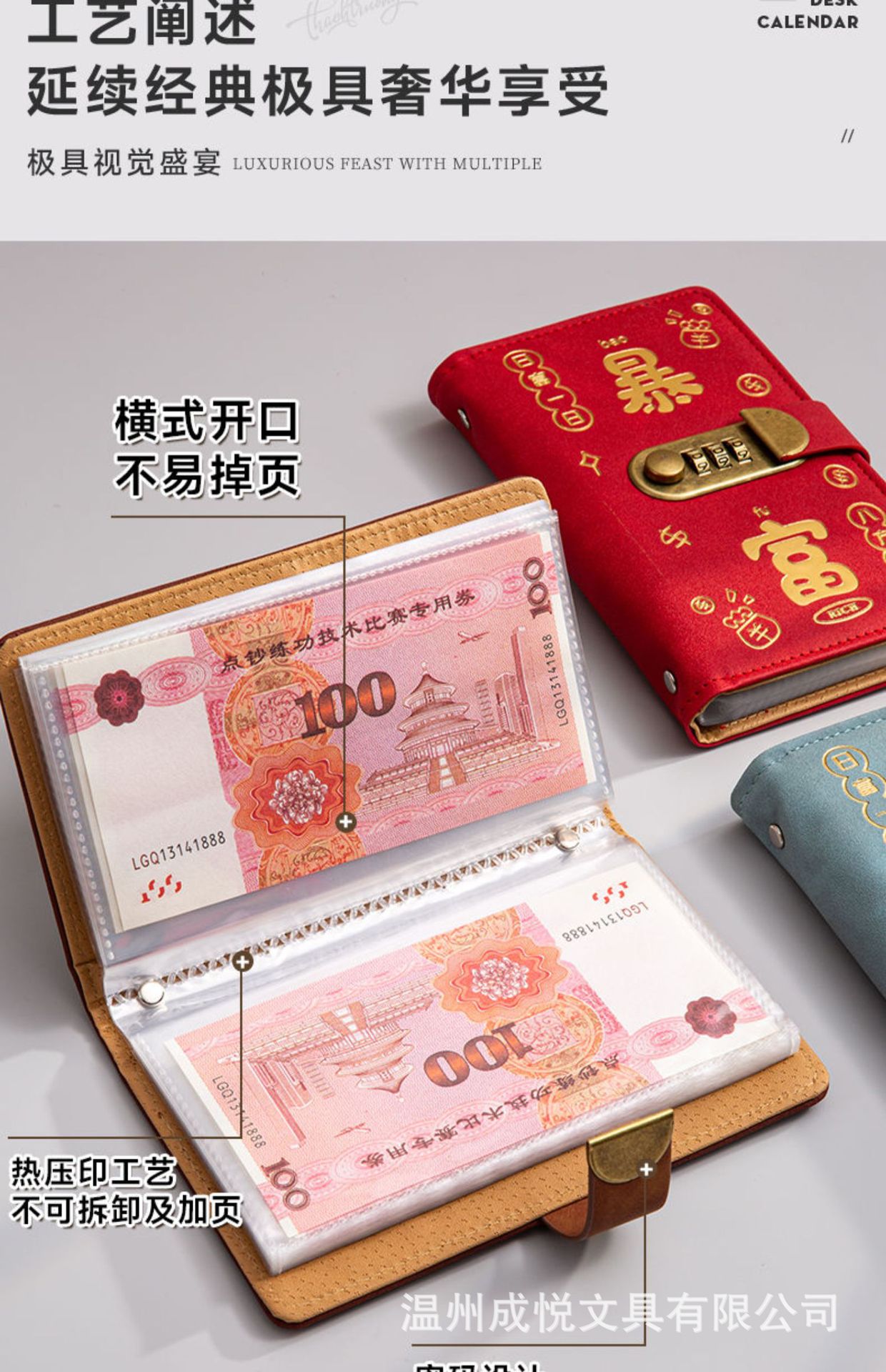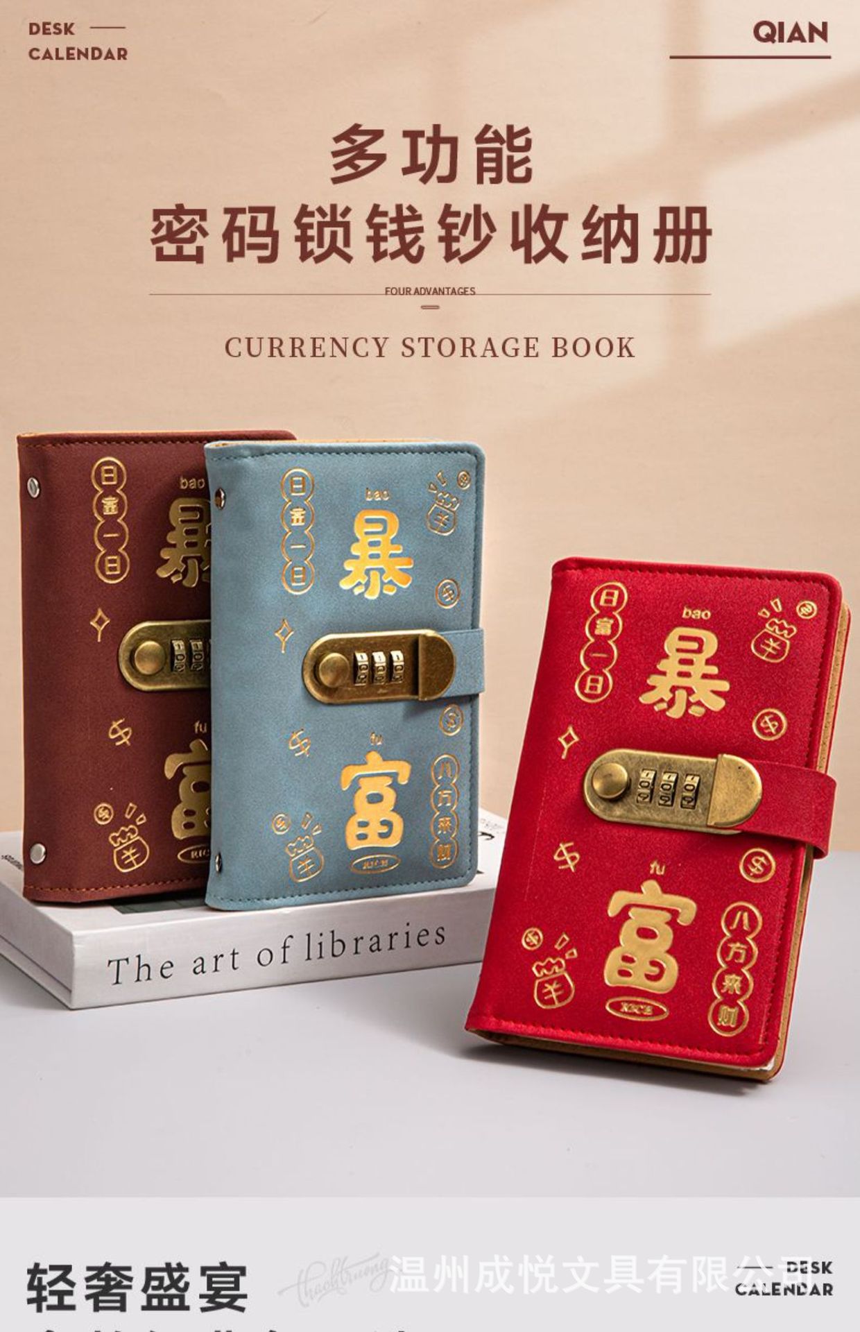 富の現金貯金帳収納ブック大容量パスワードロック付きマネークリップ収納財務管理現金マネーブックを収納可能