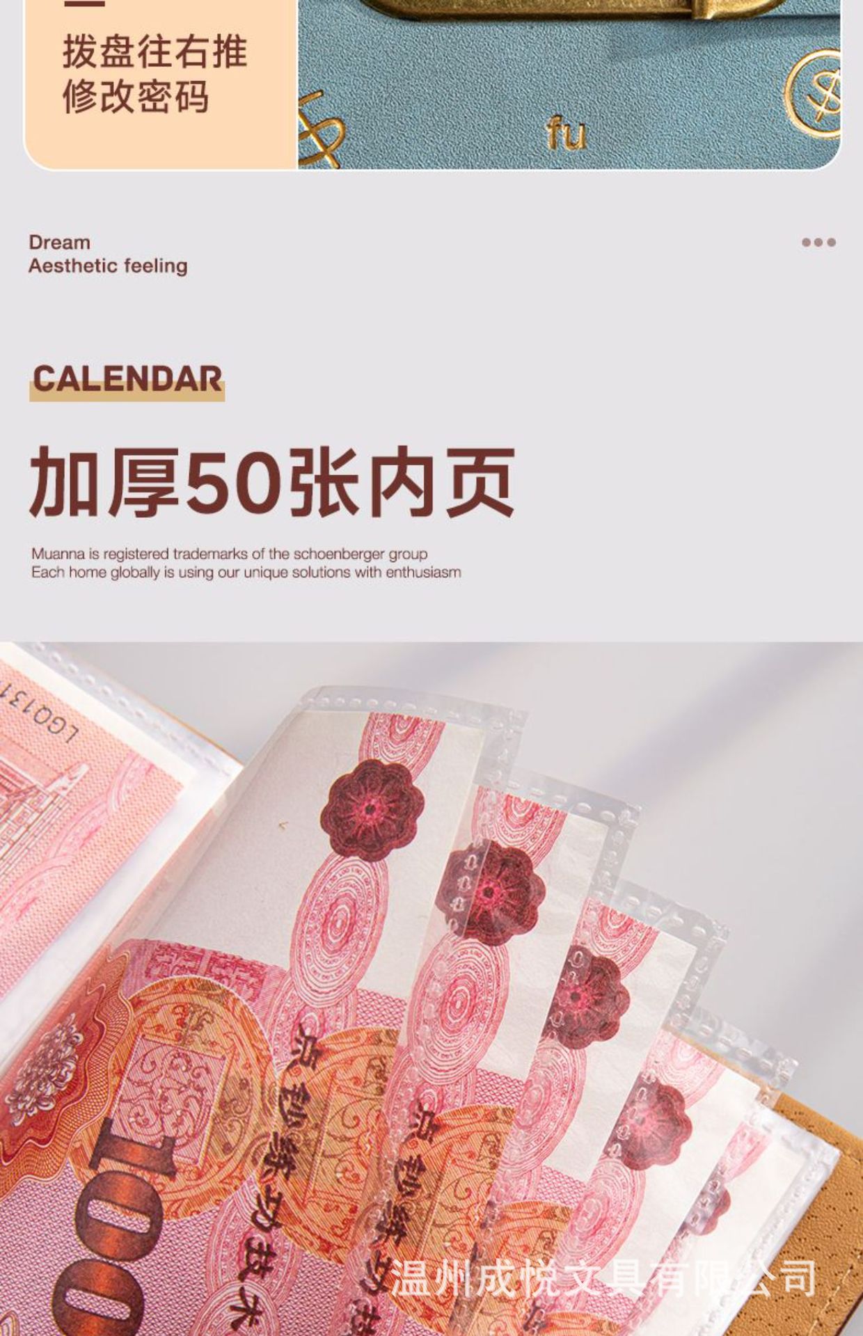 暗号ロック暴富貯金帳現金貯金帳大容量紙幣百元紙幣収納帳