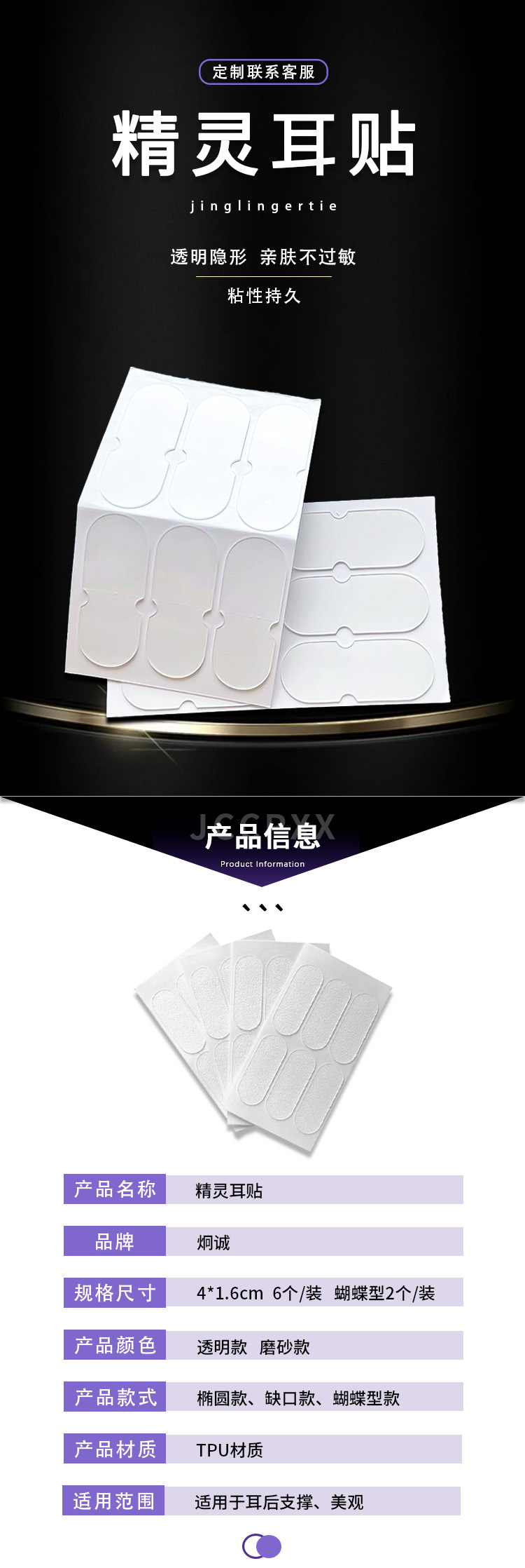 晶砖蝴蝶型精灵耳贴磨砂矫正强支撑精灵耳抖音热卖定型神器招风耳