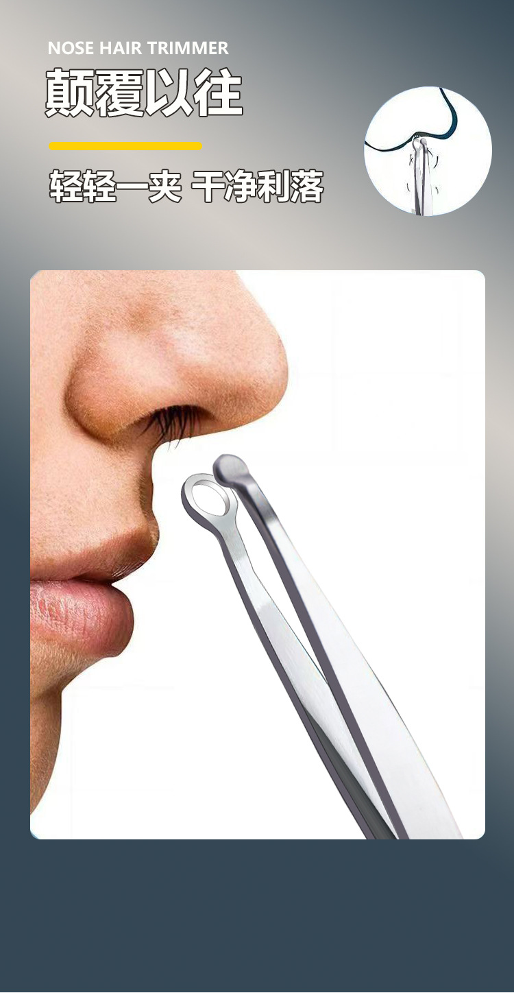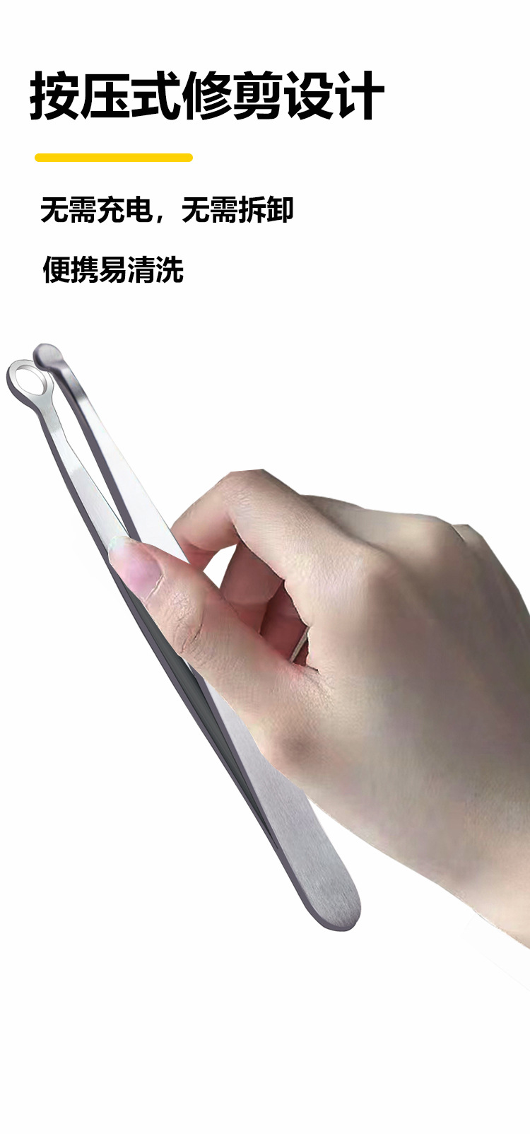 ステンレス製鼻毛クリッププレス式トリミングピンセット男性丸頭鼻毛カット鼻毛トリミング器円環鼻毛クリップ