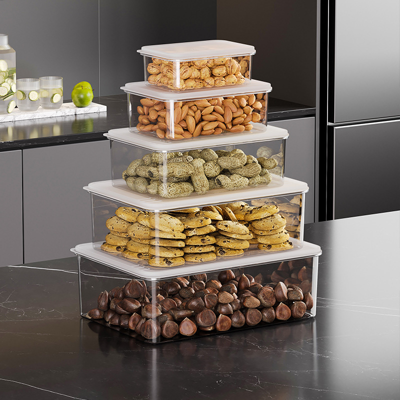 食品収納ボックス透明プラスチック家庭用スナックナッツボックスキッチン整理大容量冷蔵庫収納ボックスシール