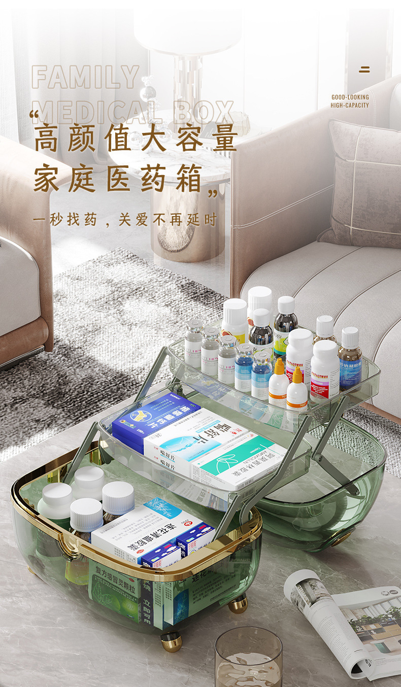 薬箱家庭用高透明多層家庭用救急箱携帯医薬箱小薬箱防疫薬品収納ボックス