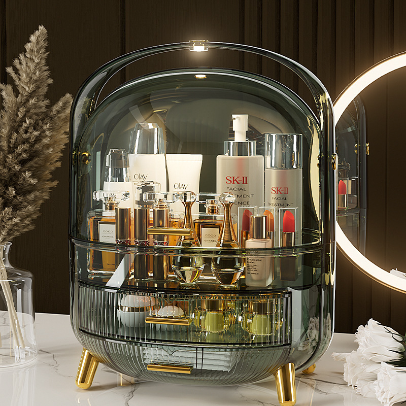 2023新型軽豪華風マスク収納ケースデスクトップ引き出しledライト付き透明化粧品収納ケース