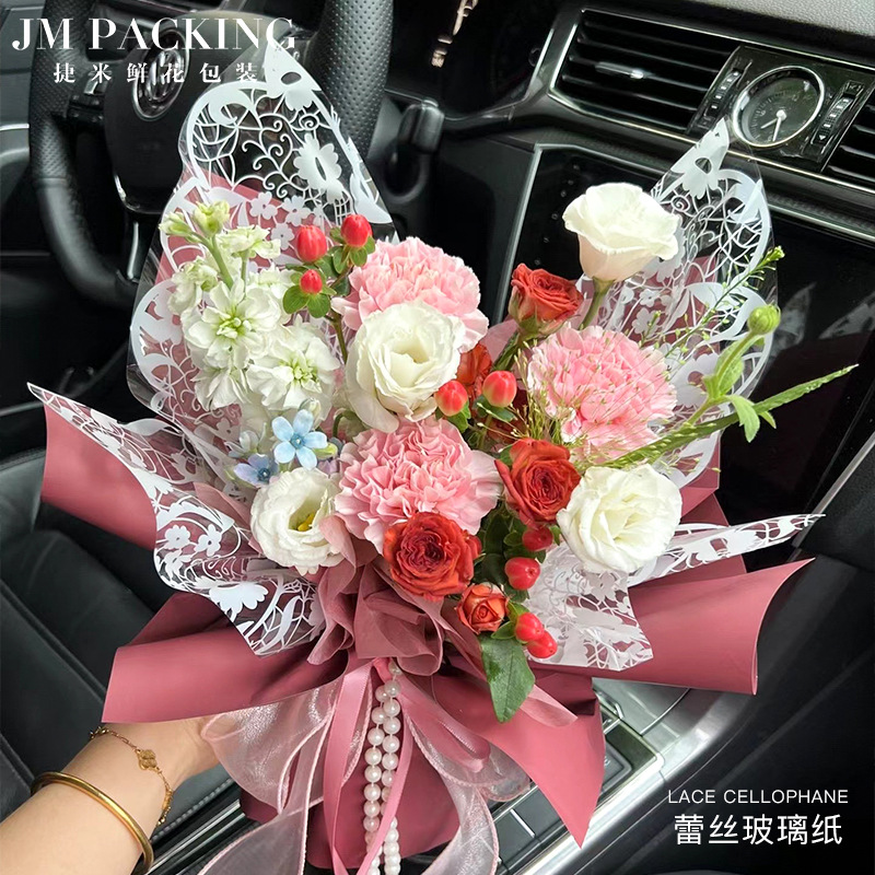 レースグラス纸4.7シルクoppフィルム透明防水バッグ花素材花芸花花ブーケ包装纸高级感