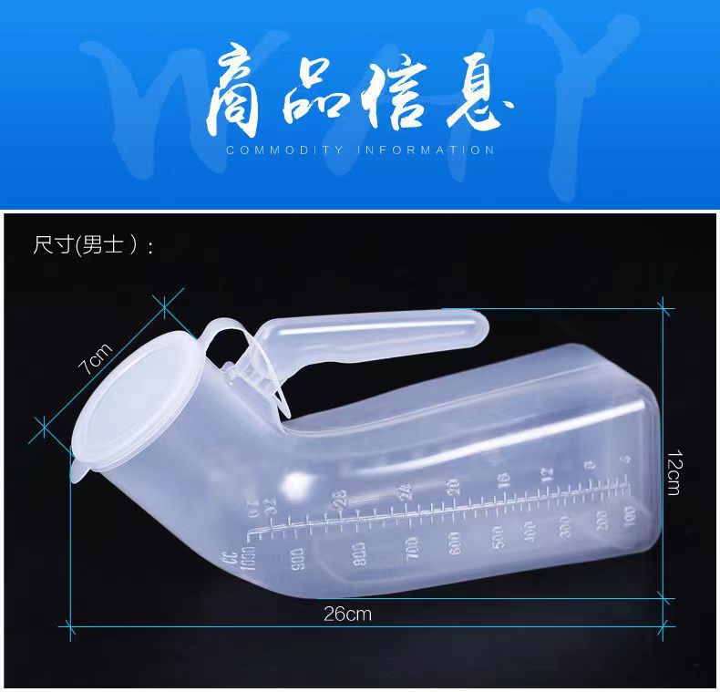 病院用男性用ミリリットル小便器、厚みのある大容量ML便器、蓋付き、高齢者用小便器、寝たきり介護用男性用小便器