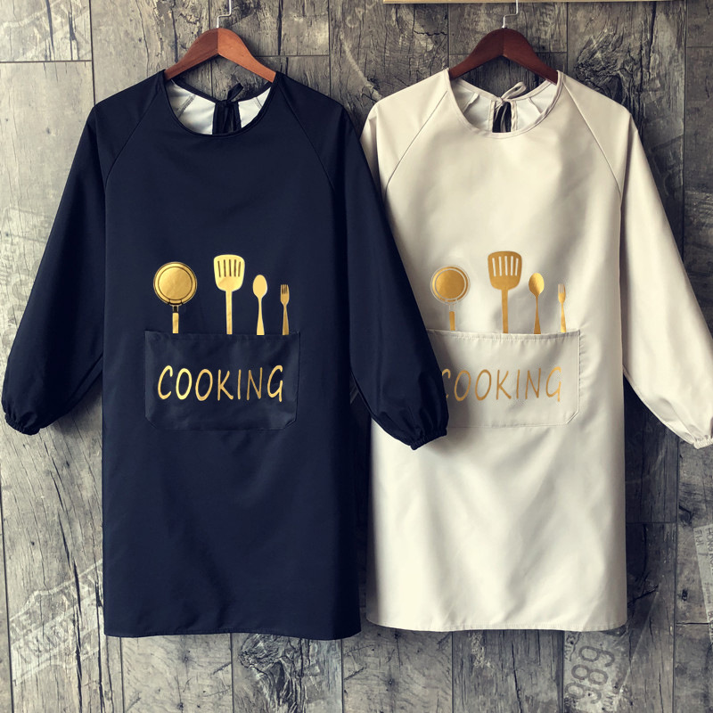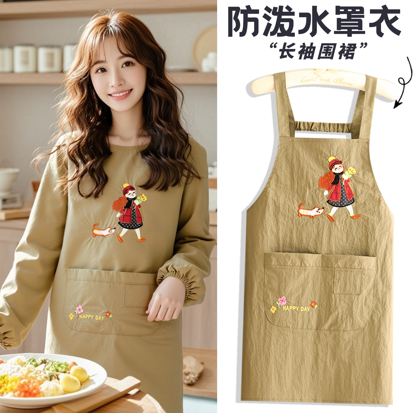 韩版刺绣罩衣女家用厨房防泼水长袖做饭围裙新款做饭防污餐饮专用