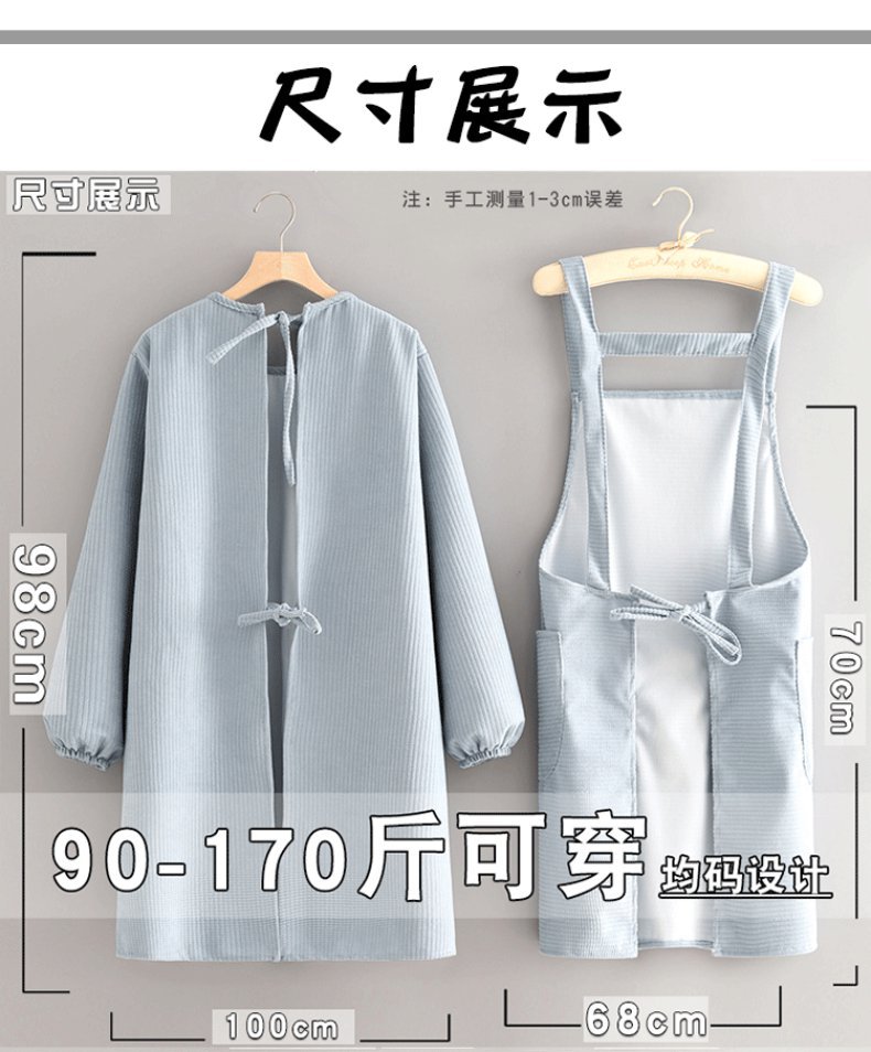 ベロア長袖エプロンキッチン家庭用通気性料理カバーウエスト女性防汚飲食専用出勤作業服
