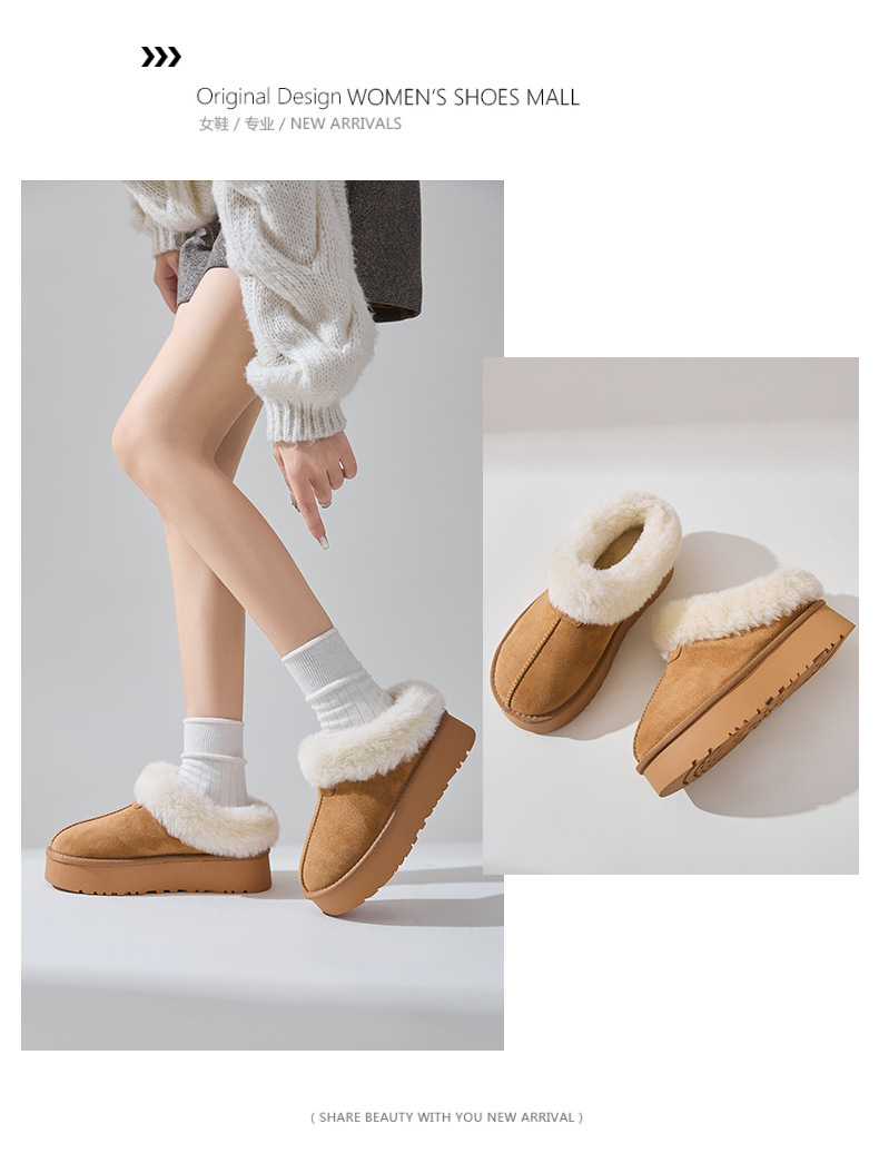 2025 新しいベルベットインターネットセレブ同じ厚底高さ増加ショートチューブファーオールインワンスノーブーツ女性の冬の綿の靴