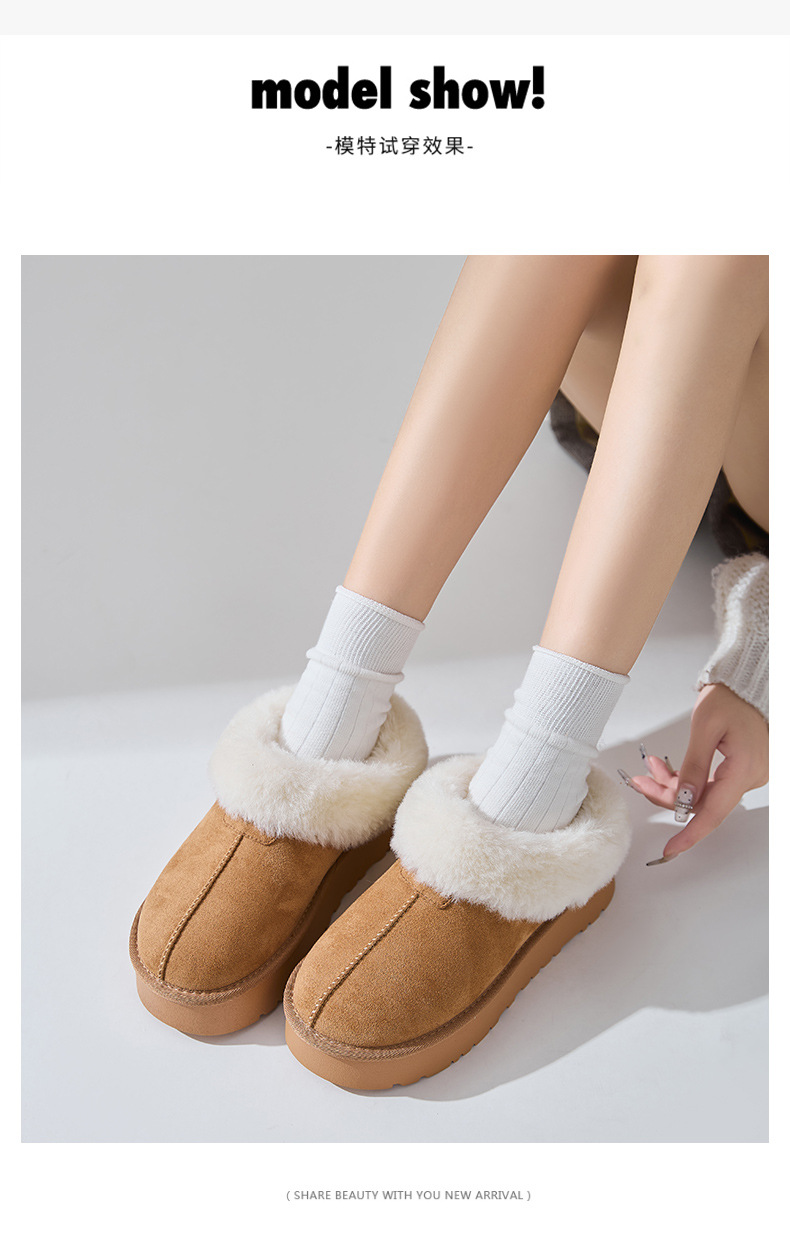 2024新型冬は保温雪地靴の女性の厚い底の毛の半スリッパを厚くして外に着ます。