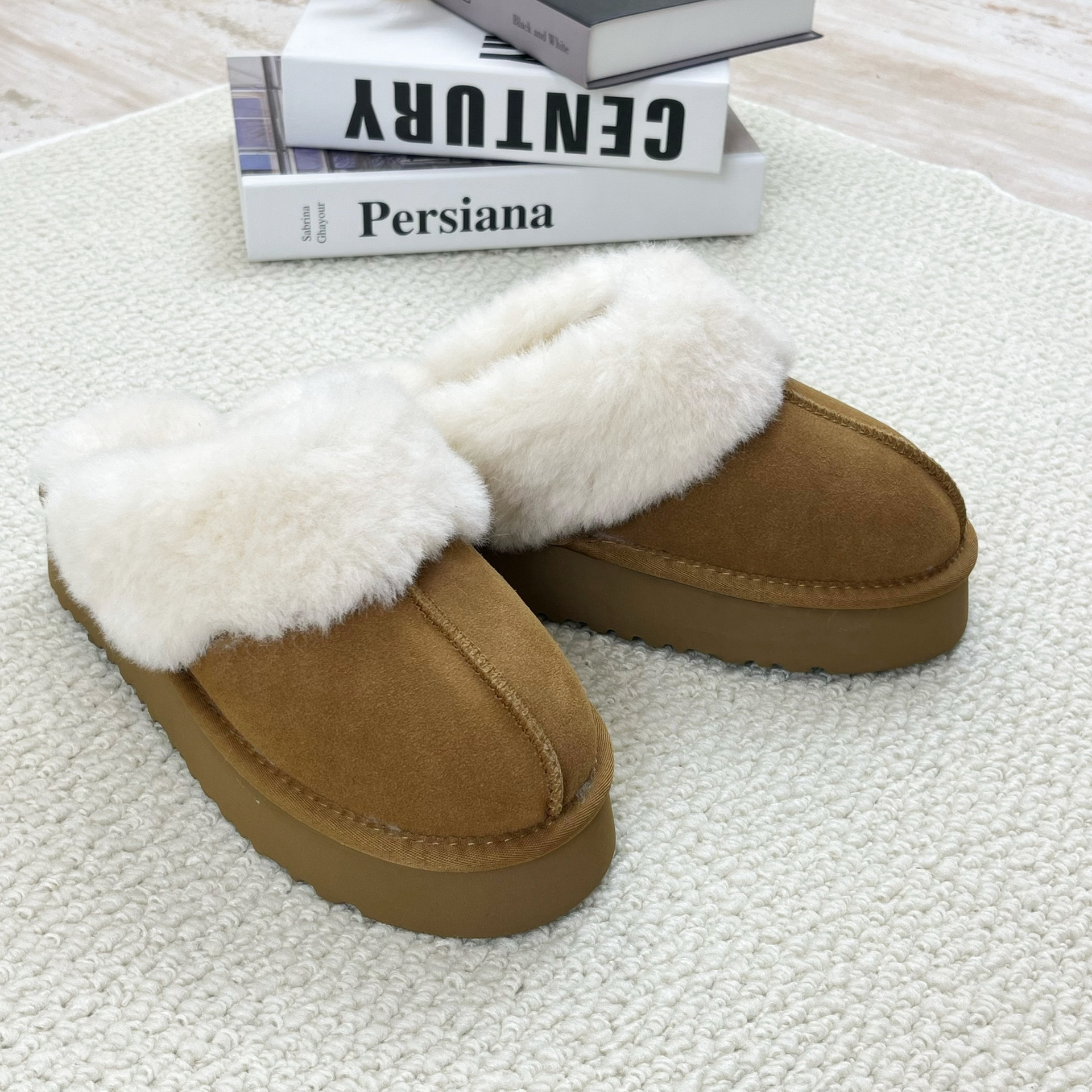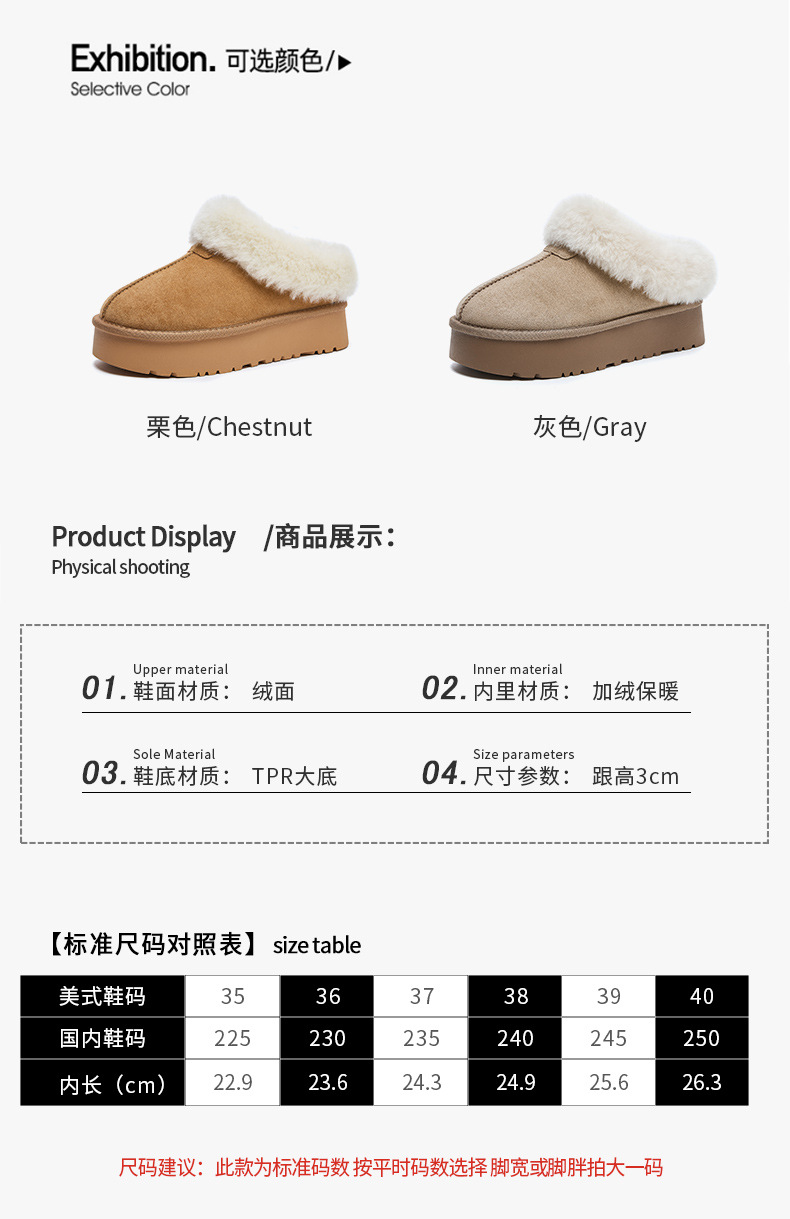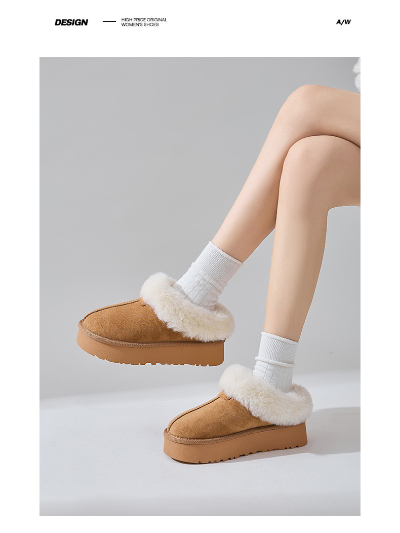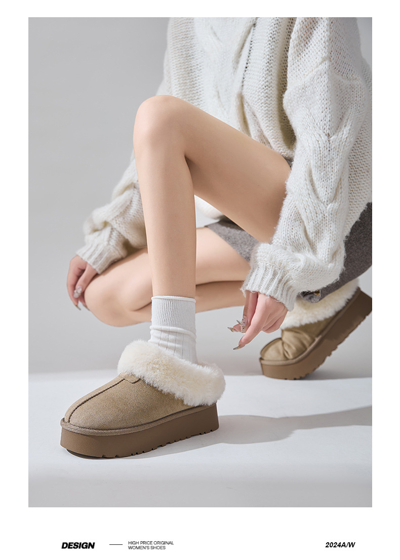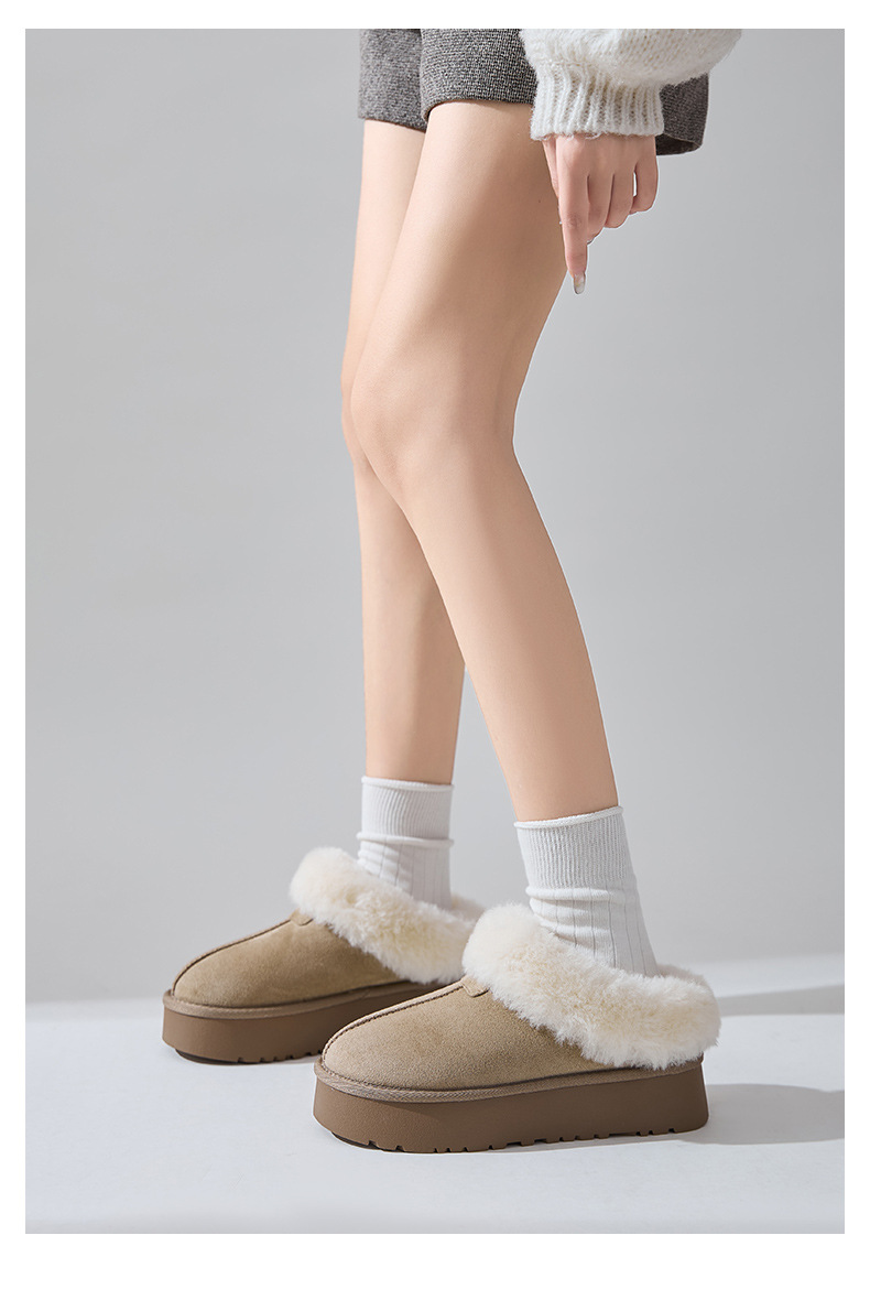 皮毛一体~桑坡村包头厚底星拖保暖棉鞋毛毛鞋雪地靴半拖鞋女外穿