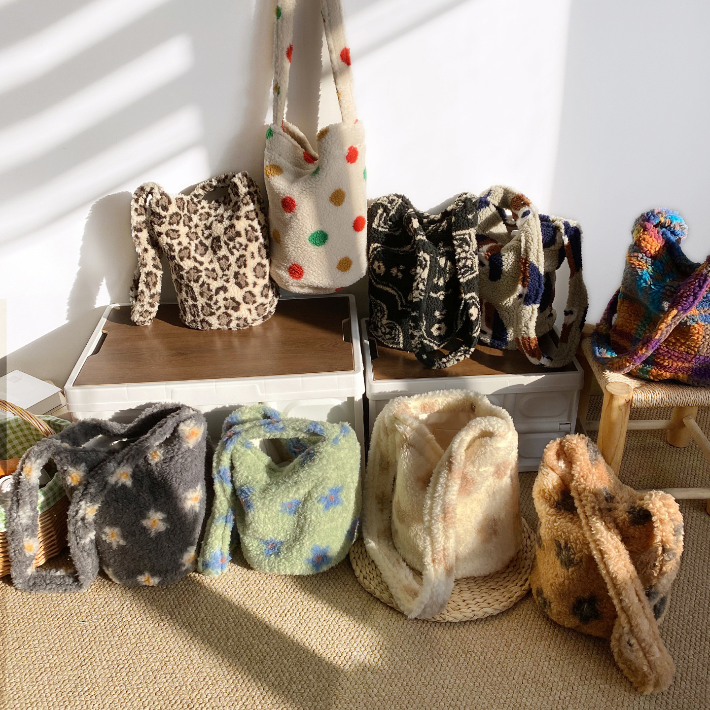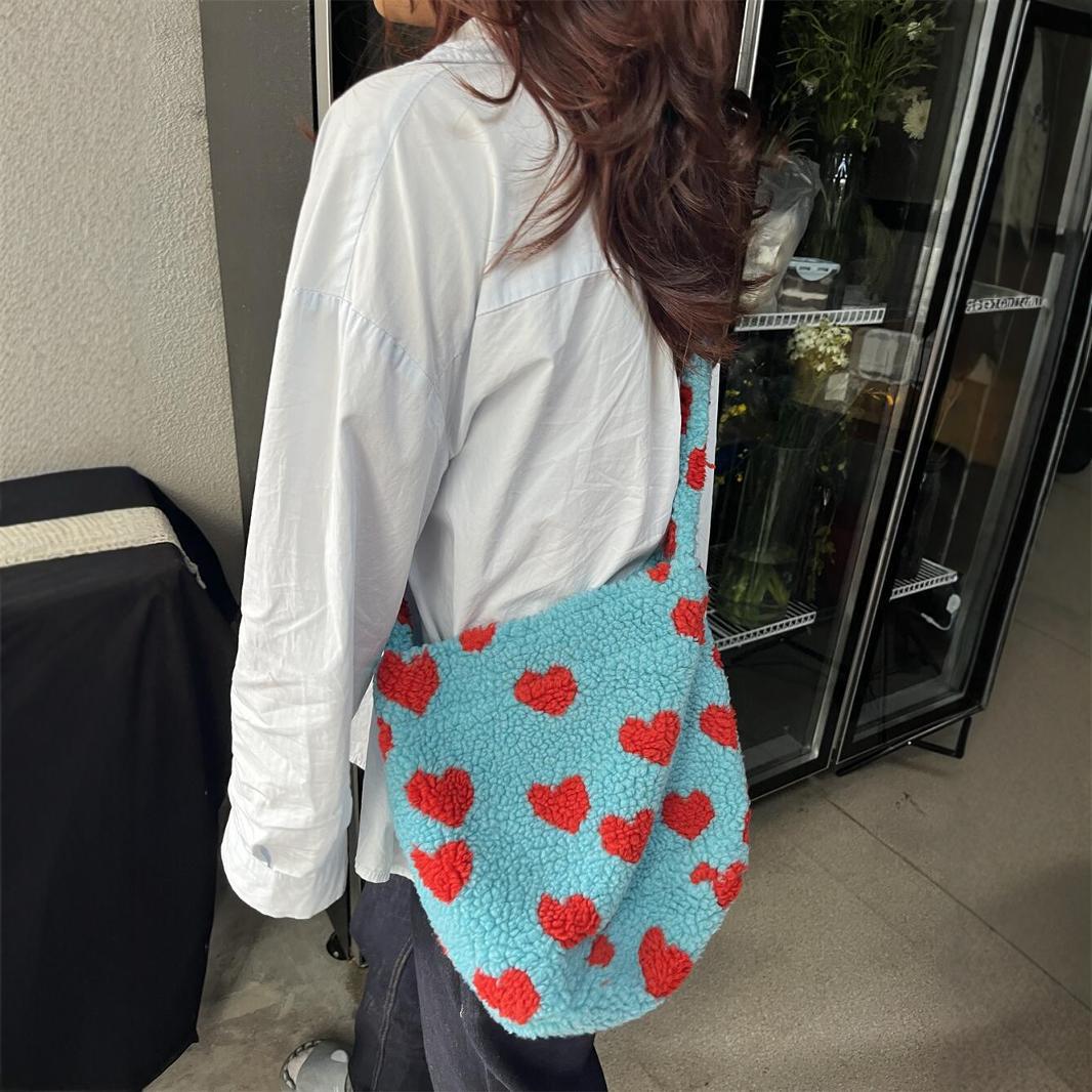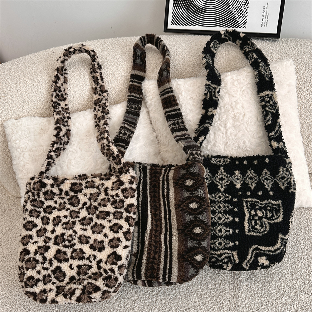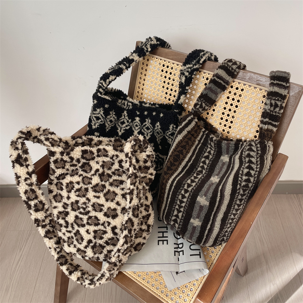 韓国東大門秋冬バッグレディースぬいぐるみラムウールショルダーバッグカジュアルウール大容量ヒョウ柄クロスボディバッグ