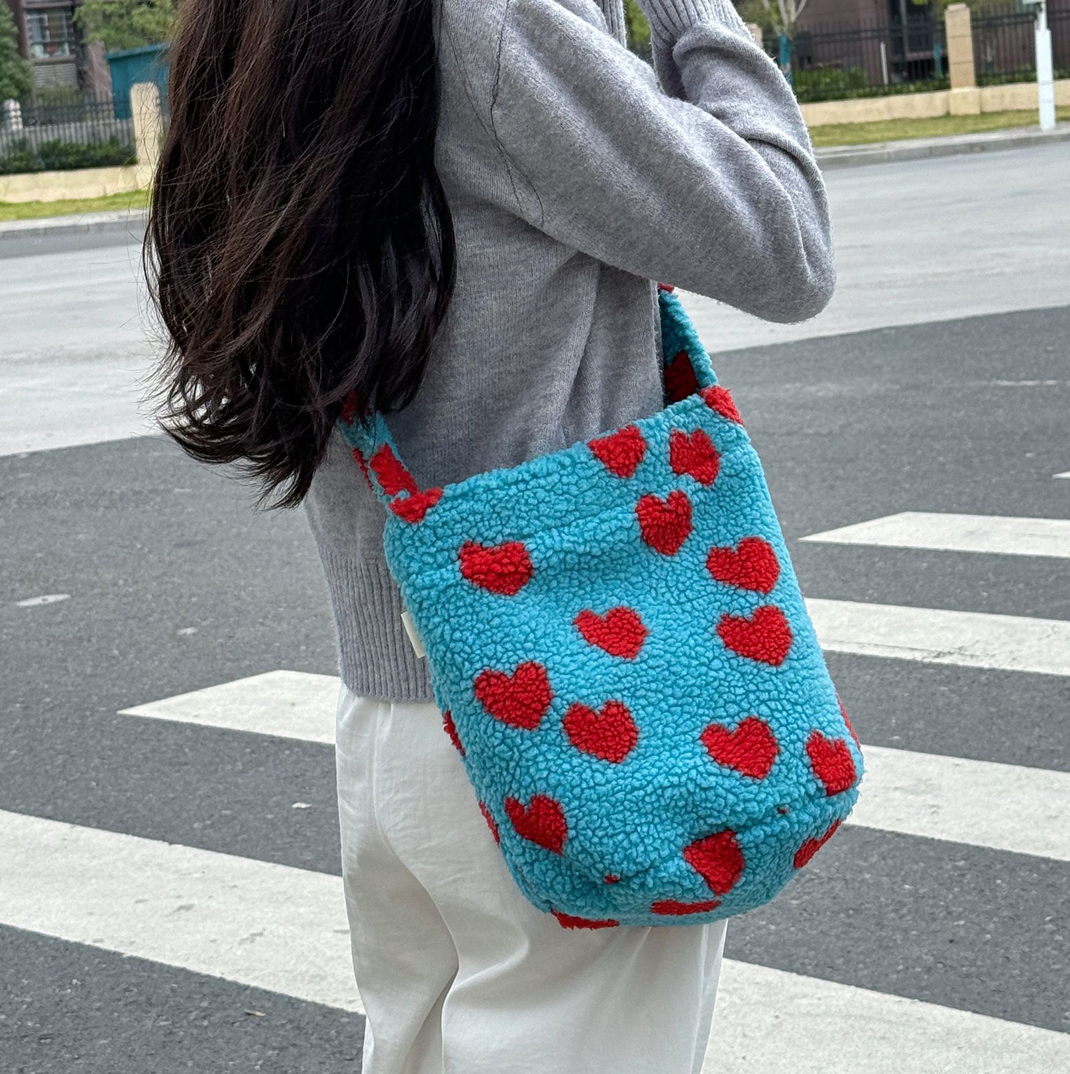 多用途レトロラムウール大容量バケットバッグ秋冬ショルダーバッグ個性的カジュアル斜め掛けショルダーバッグ女性用