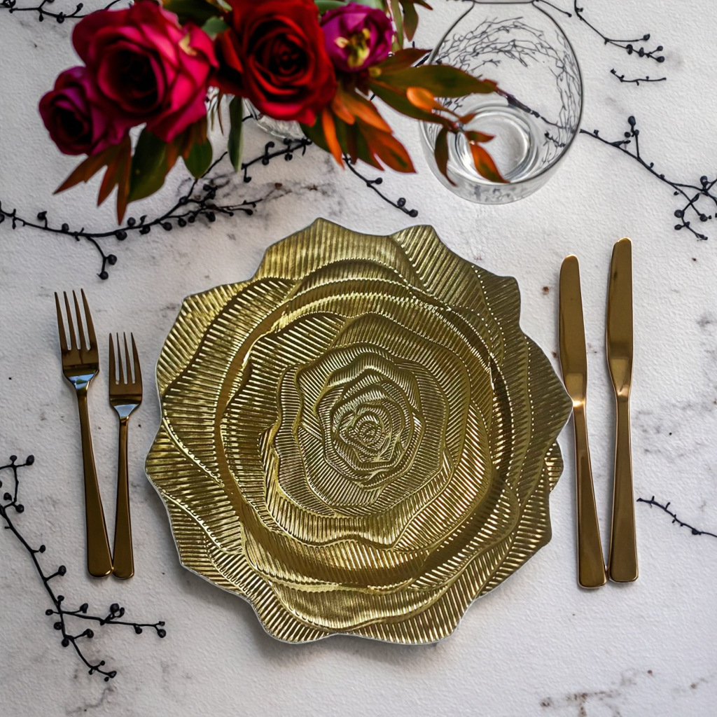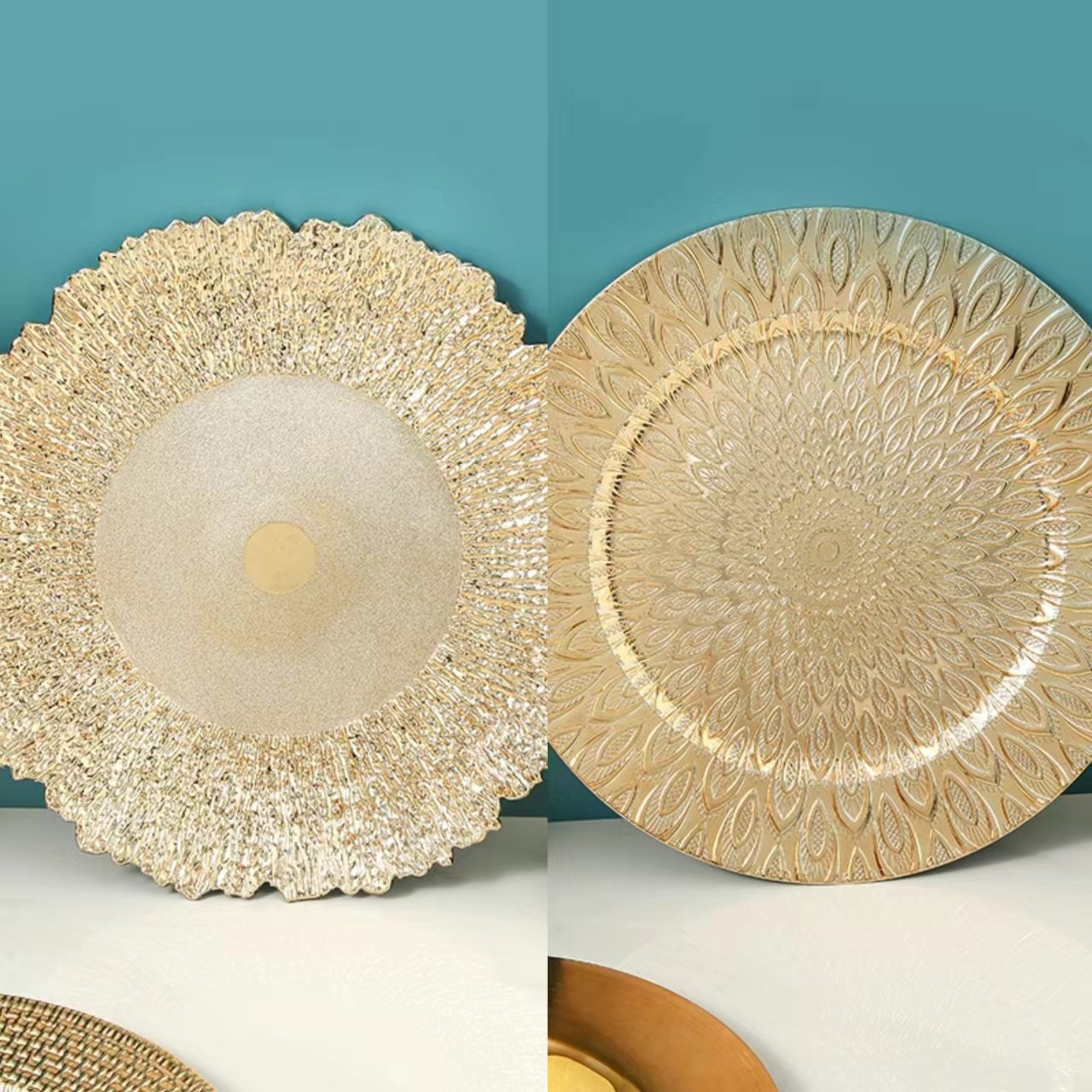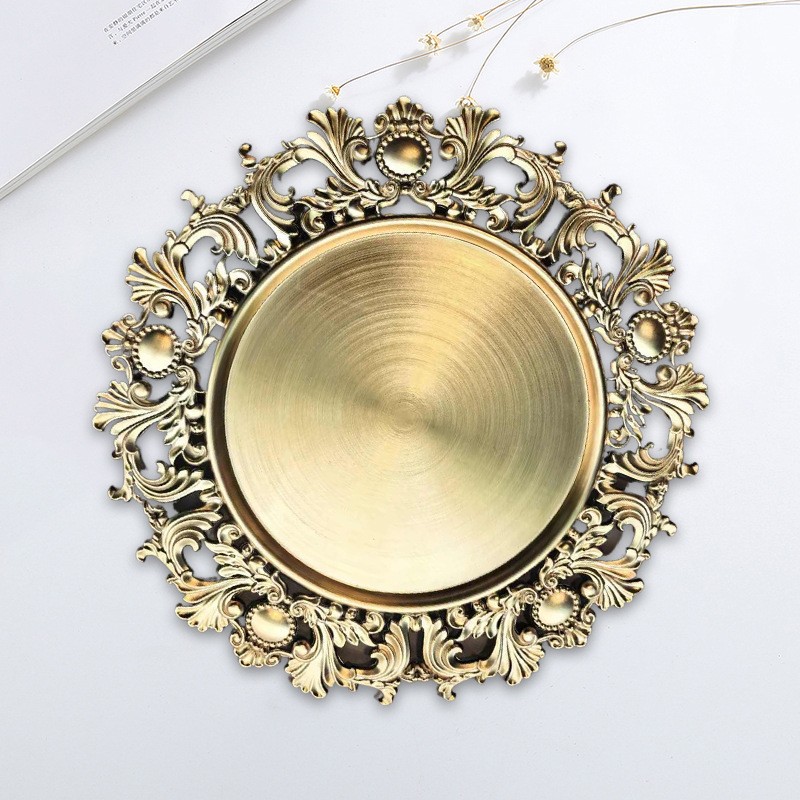 国境を越えた貿易充電器プレートヨーロッパの結婚式のクラフト彫刻ゴールデンプラスチック装飾プレート西洋プレースマットプレート