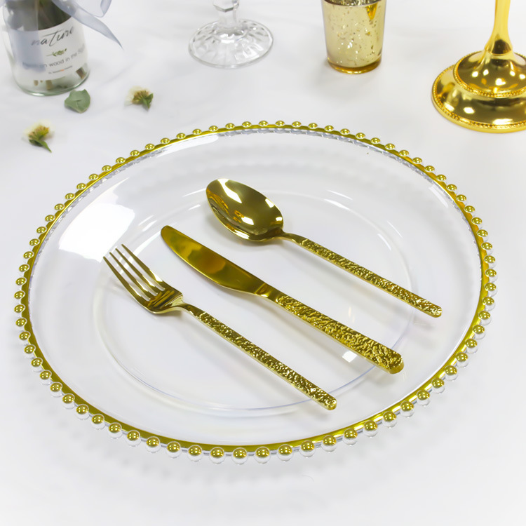 13inch アクリル透明ゴールデンボーダー充電器タブレット結婚式クリスマスベビーシャワーパーティー装飾プラスチック