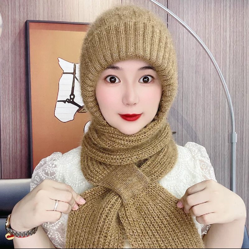 ベルベット冬帽子マフラー一体女性が電気自動車防風帽東北冬防寒ニット保温帽に乗る