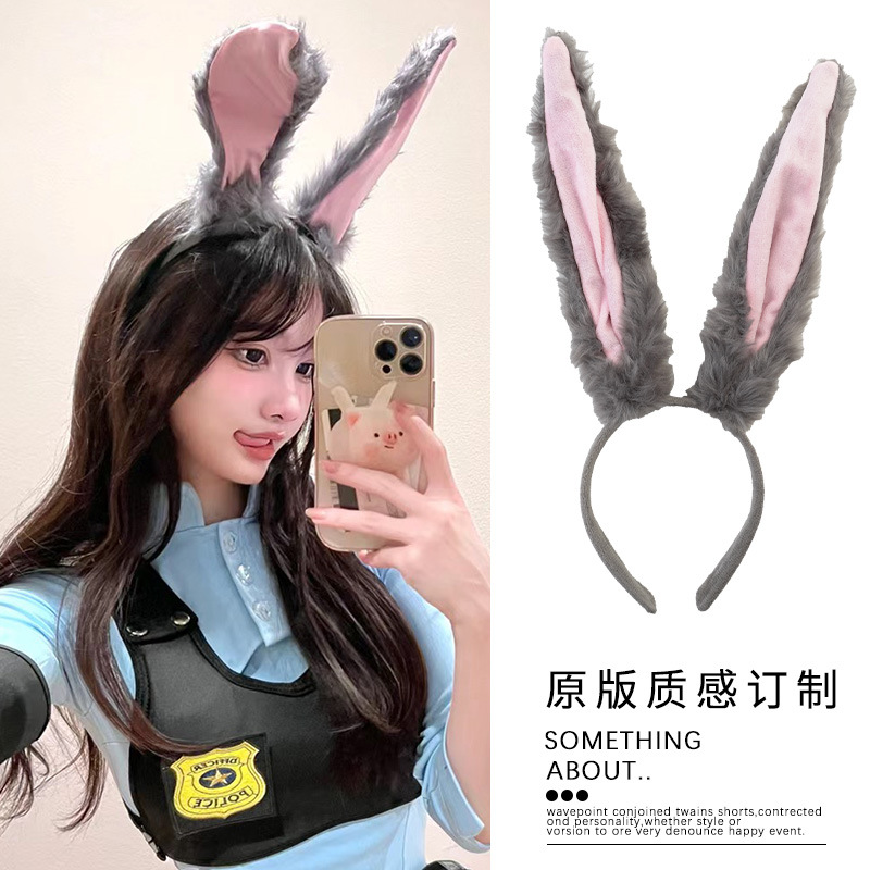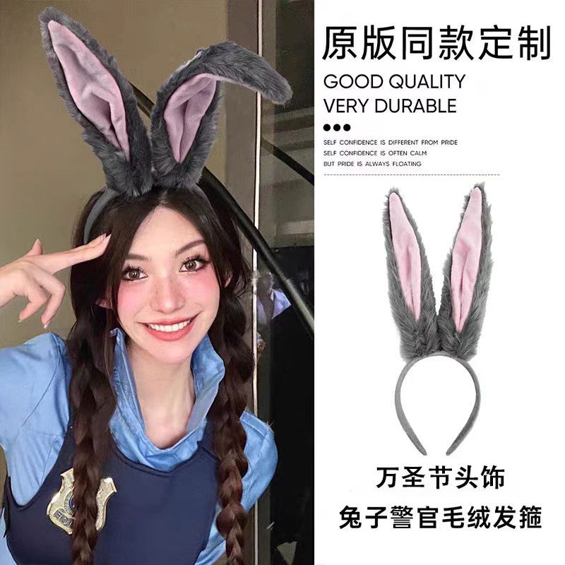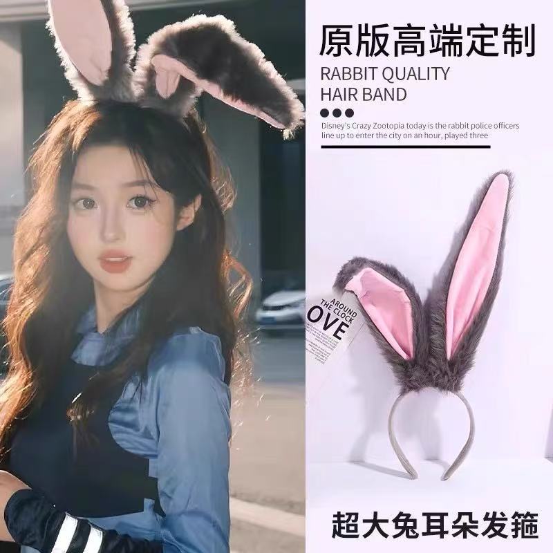 朱迪兔子cosplay头箍可爱耳朵头饰毛绒发箍发饰万圣节配饰品装扮