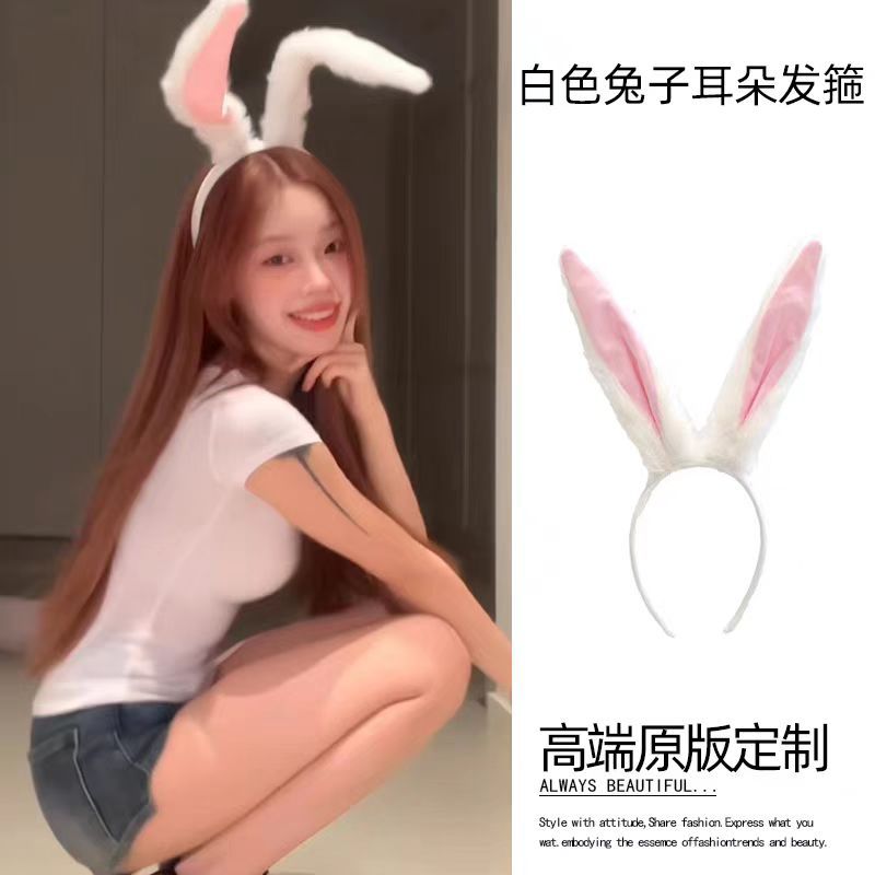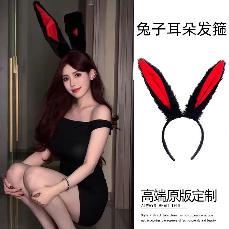 cos兔女郎发箍可爱纯欲风兔耳朵头箍女毛绒万圣节头饰兔子发卡