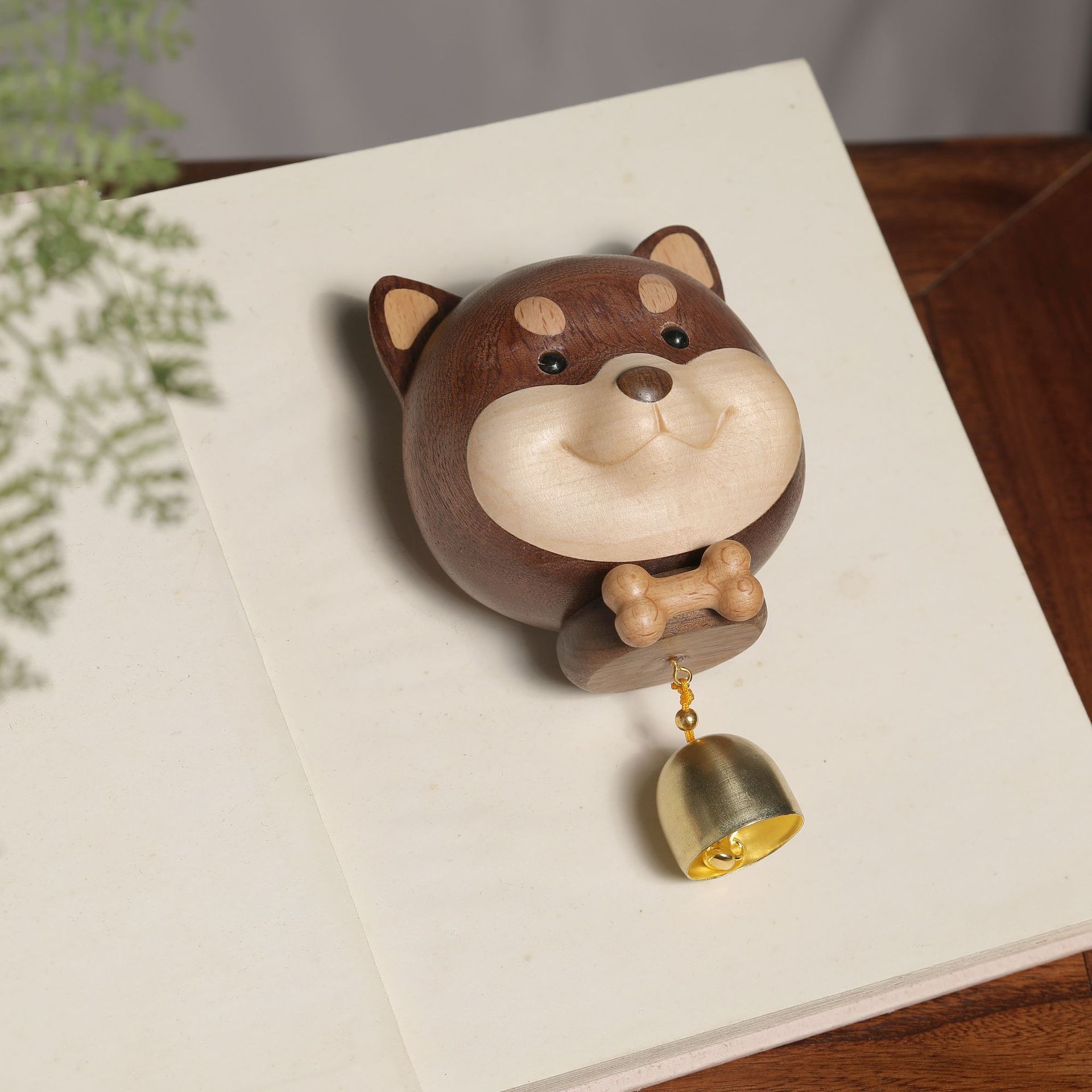 工場直売烏檀木柴犬風鈴ストラップ癒し系磁気吸引ホーム入門装飾創意風鈴ストラップ