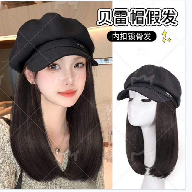 帽子假发女长发秋冬新款八角贝雷帽子假发一体仿真人长直发头套