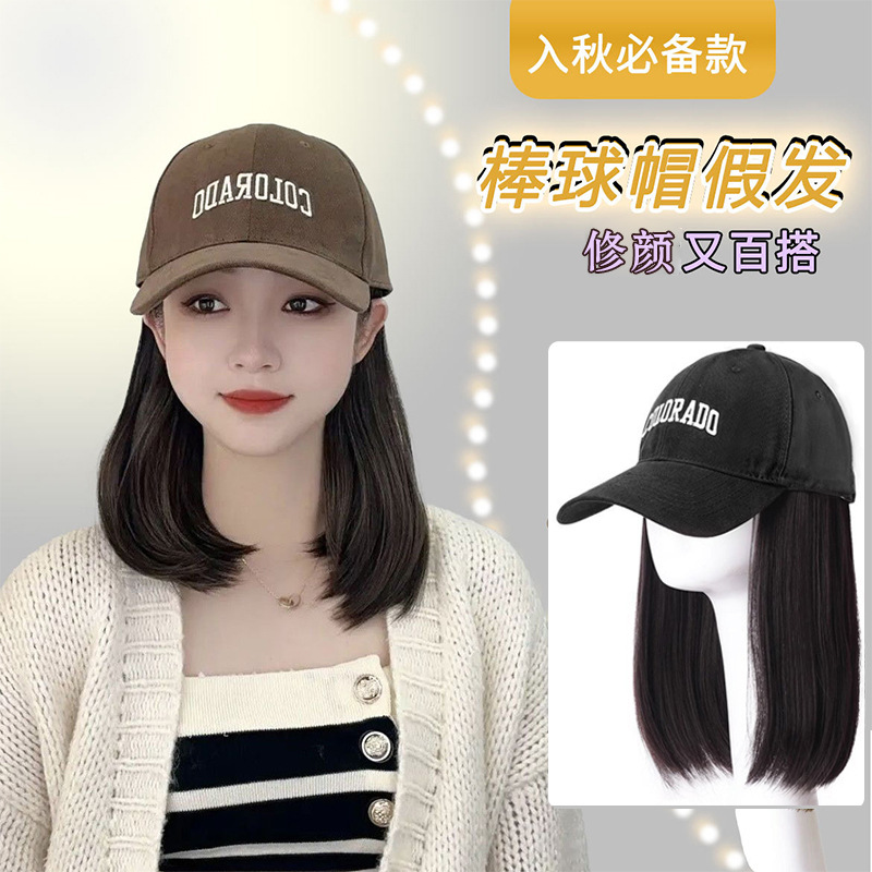 ウィッグと帽子が一体化した女性の秋の新しい刺繍野球帽ショートストレートヘアファッションウィッグ付きインナーバックルハット