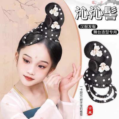 子供の古典的なダンスの公演のかつらの髪は中国のダンスの盤の髪を飾っています。