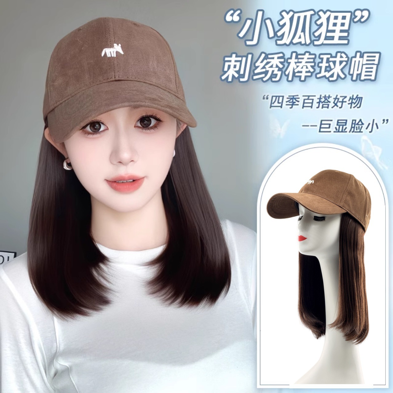 假发帽子一体女锁骨发秋冬时尚小狐狸长直发棒球帽子发全头套假发