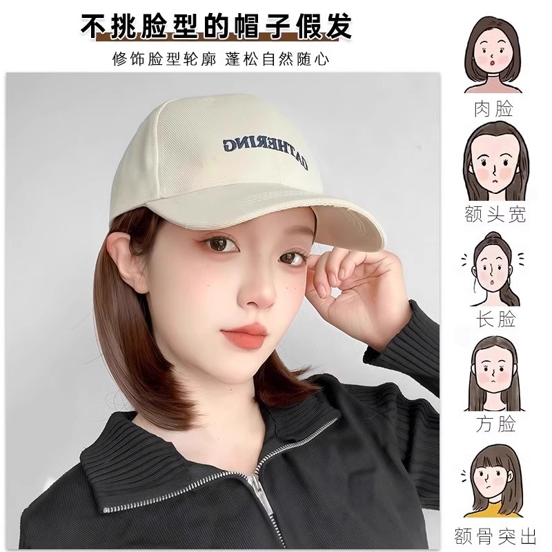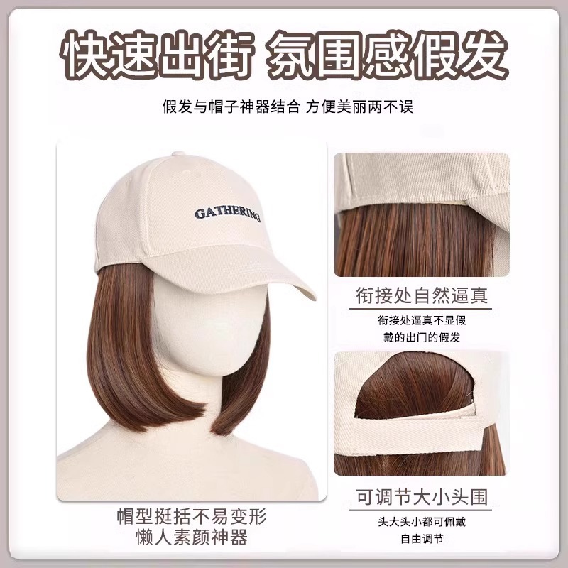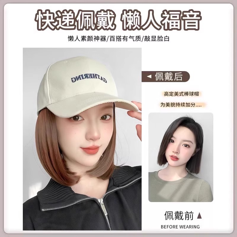 帽子假发一体短发时尚女款2025新款棒球帽子全头套锁骨发假发帽子