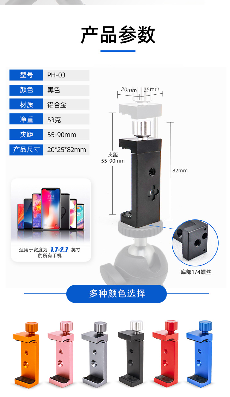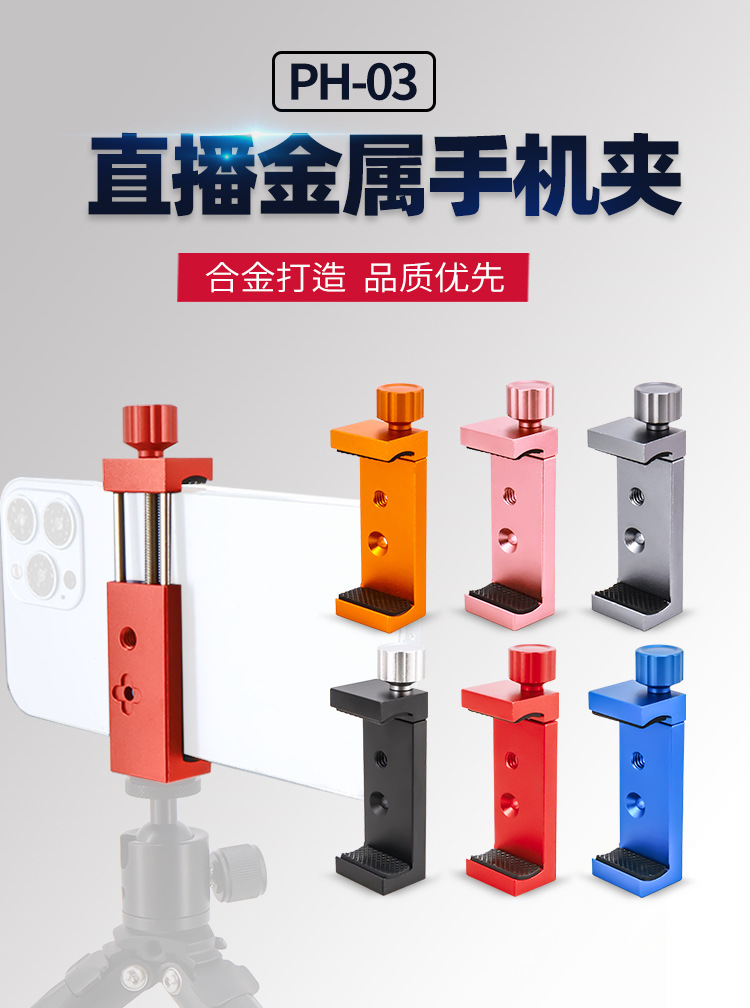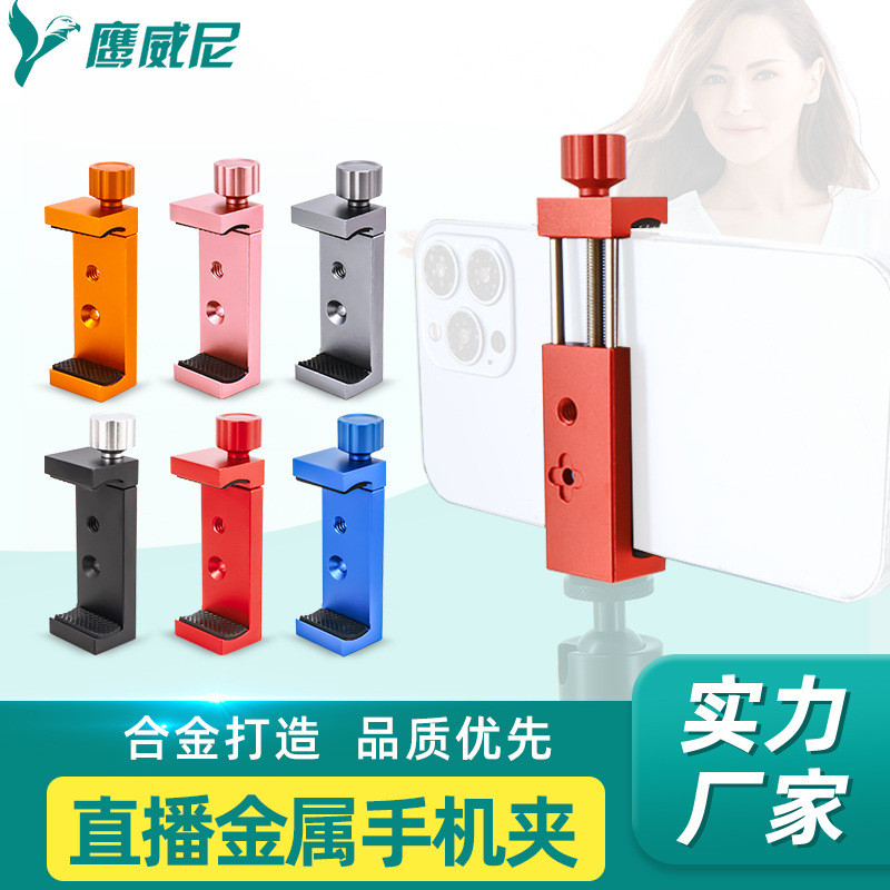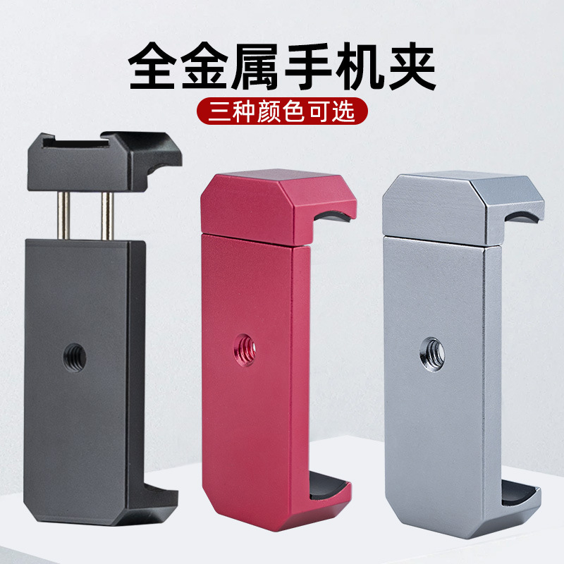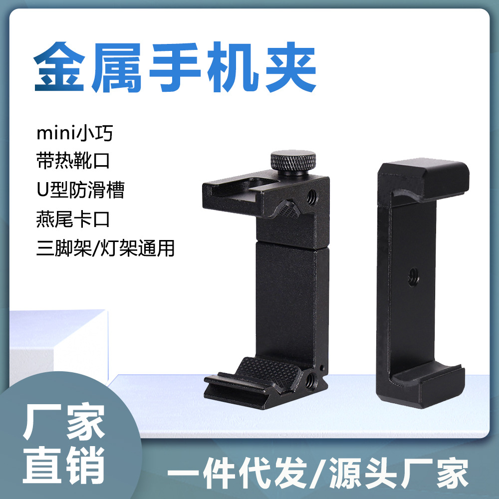 金属一字携帯電話クリップ自撮り生放送撮影三脚雲台通用冷熱靴固定携帯電話スタンド