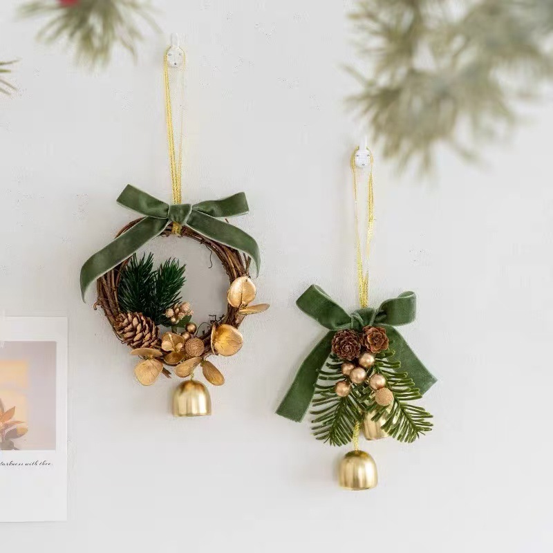 圣诞节ins风迷你花环门挂把手车挂家居橱窗装饰氛围感欢迎铃铛藤