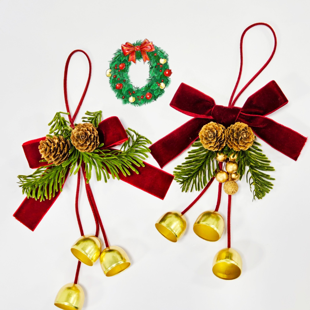 2025年クリスマスデコレーション、本物の松ぼっくり、ベル、ペンダント、クリスマスカーハンギング、ベリー、リース、小さな花輪、ユーカリ、小花
