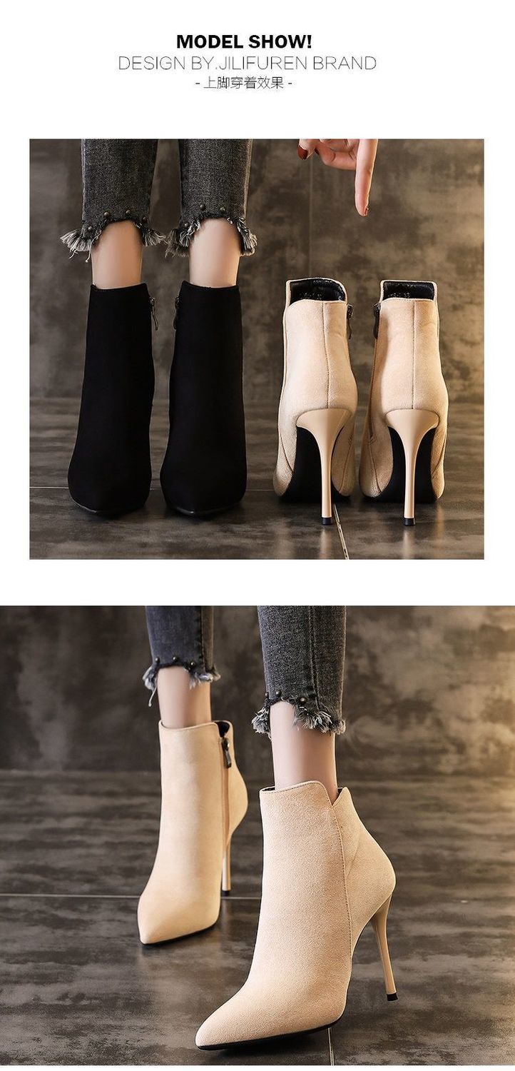 Zショートブーツ レディース 春秋 シングルブーツ 2024年新作 セクシー スティレットヒール ポインテッドトゥ スリムブーツ ヌードブーツ ショートブーツ ハイヒール 秋