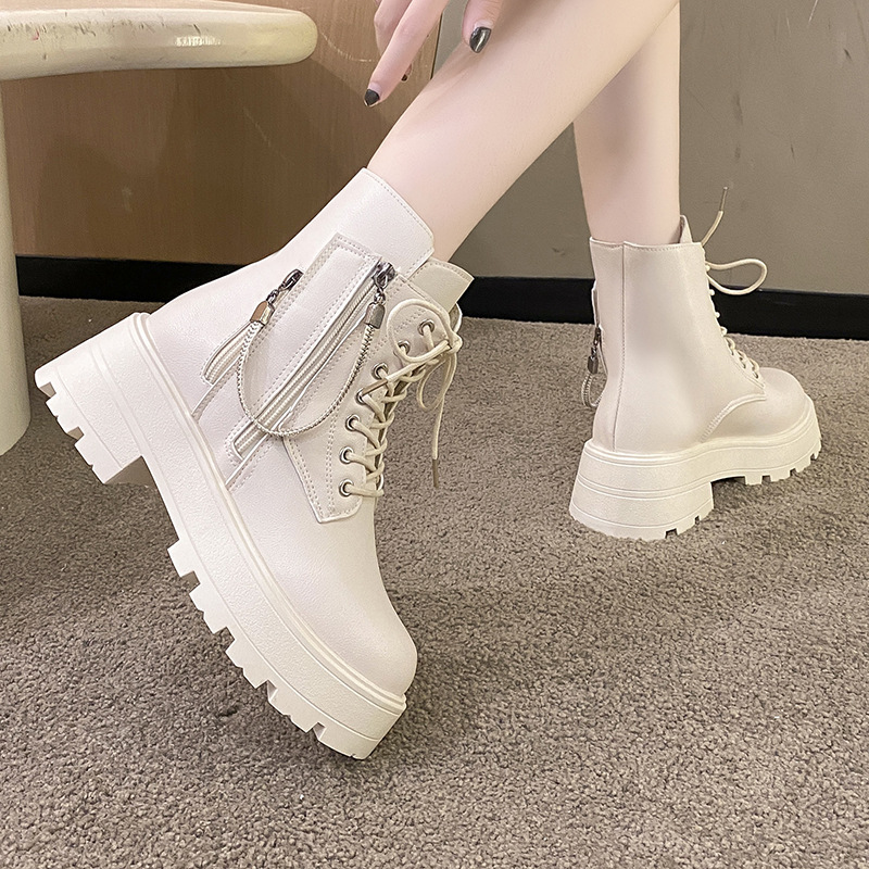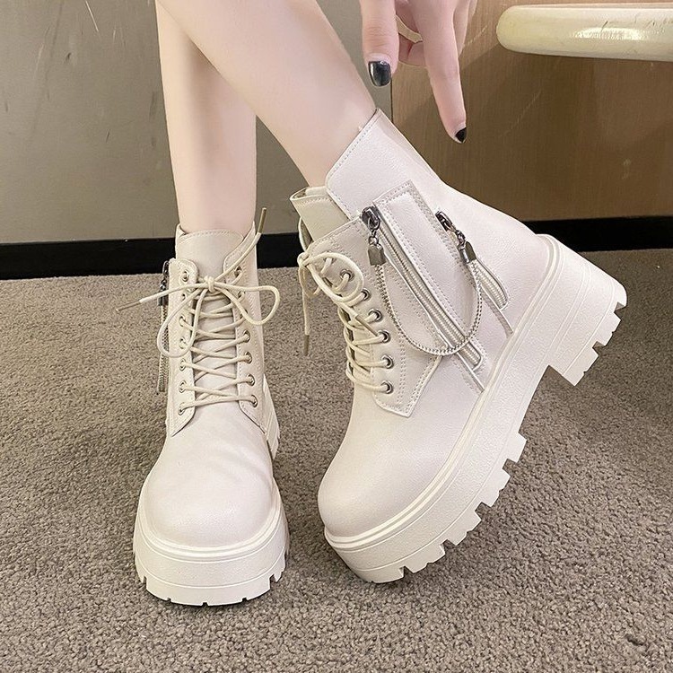 ホワイトマーティンブーツ レディース 2025年新作 ダブルジッパー バイクブーツ 秋冬 シングルスタイル イギリス風 厚底 ハイヒール ショートブーツ
